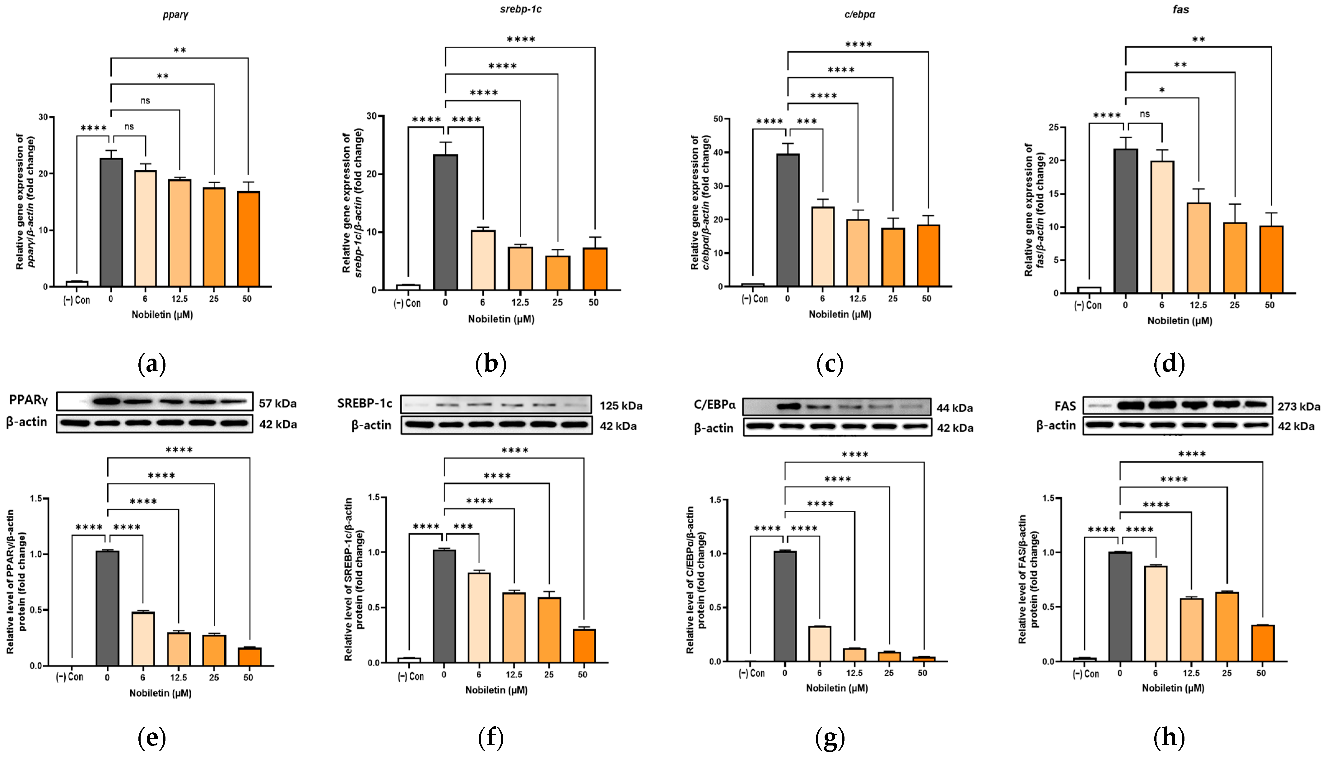 3.3. Suppression of Adipogenic Transcription Factors by Nobiletin