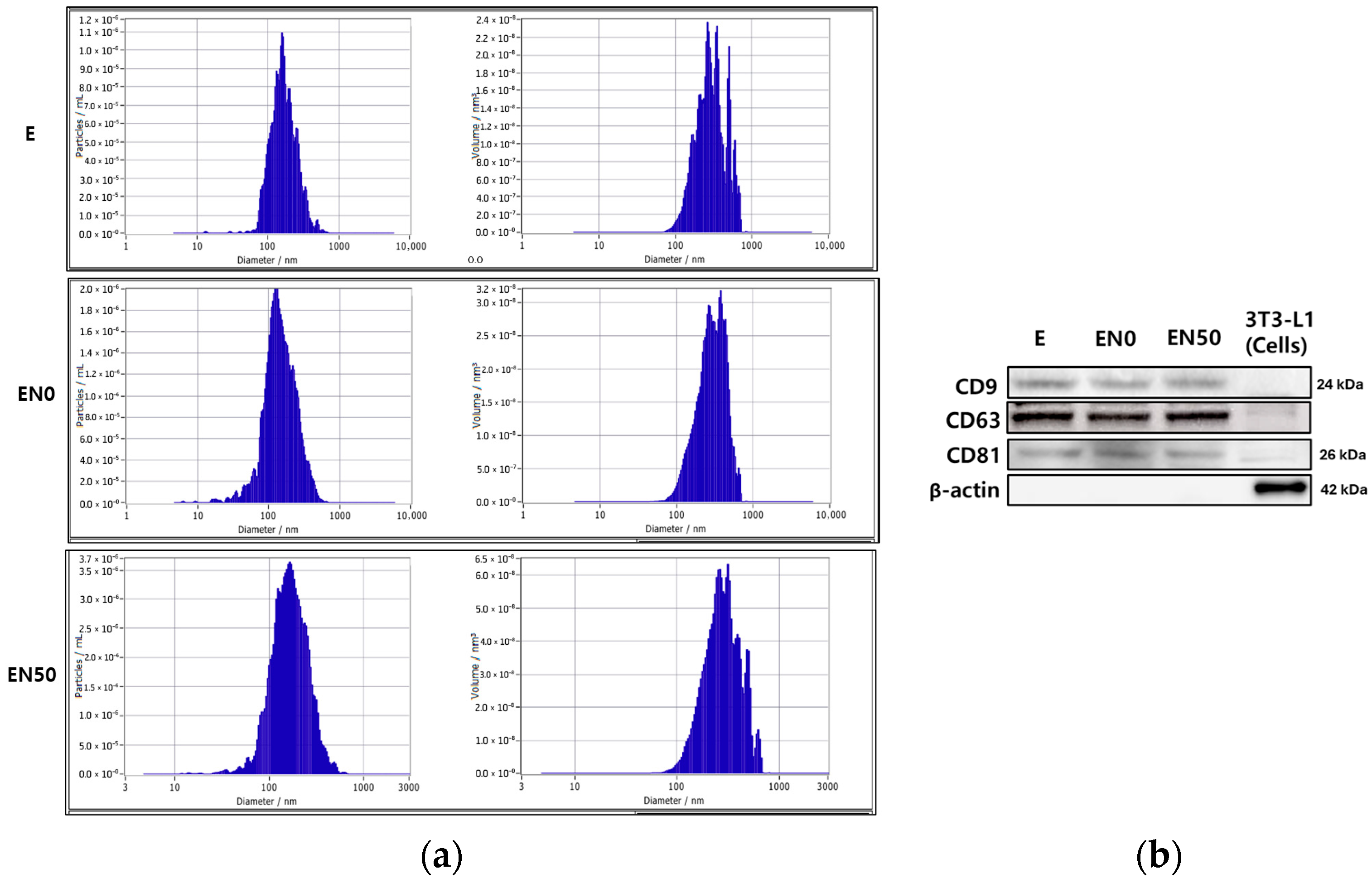 3.7. Exosome Extraction, Size, Concentration, and Markers