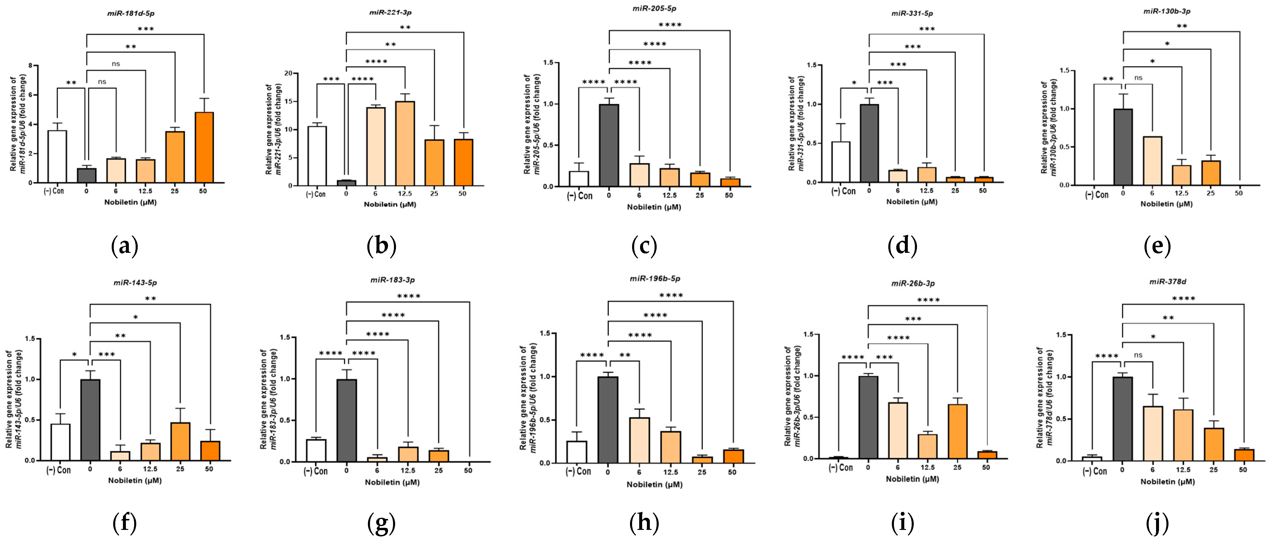 - Wang, J.-G.; Jian, W.-J.; Li, Y.; Zhang, J. Nobiletin promotes the pyroptosis of breast cancer via regulation of miR-200b/JAZF1 axis. Kaohsiung J. Med. Sci. 2021, 37, 572–582. [Google Scholar] [CrossRef]