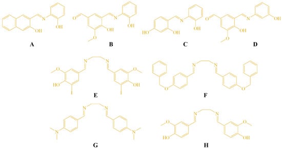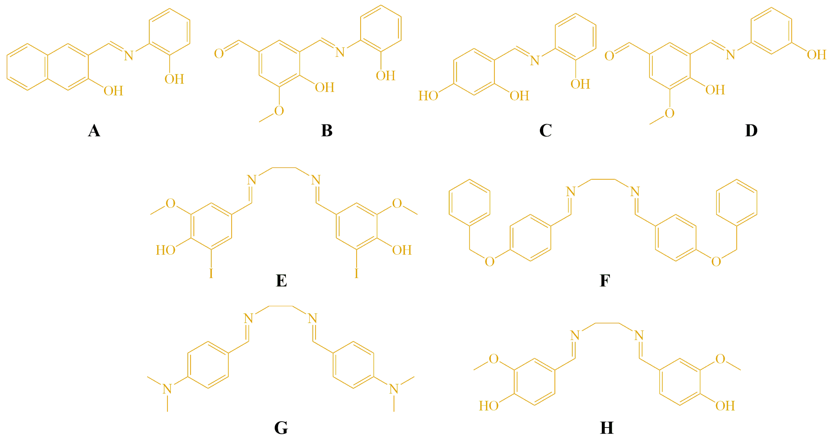 - Przybylski, P.; Huczynski, A.; Pyta, K.; Brzezinski, B.; Bartl, F. Biological properties of Schiff bases and azo derivatives of phenols. Curr. Org. Chem. 2009, 13, 124–148. [Google Scholar] [CrossRef]