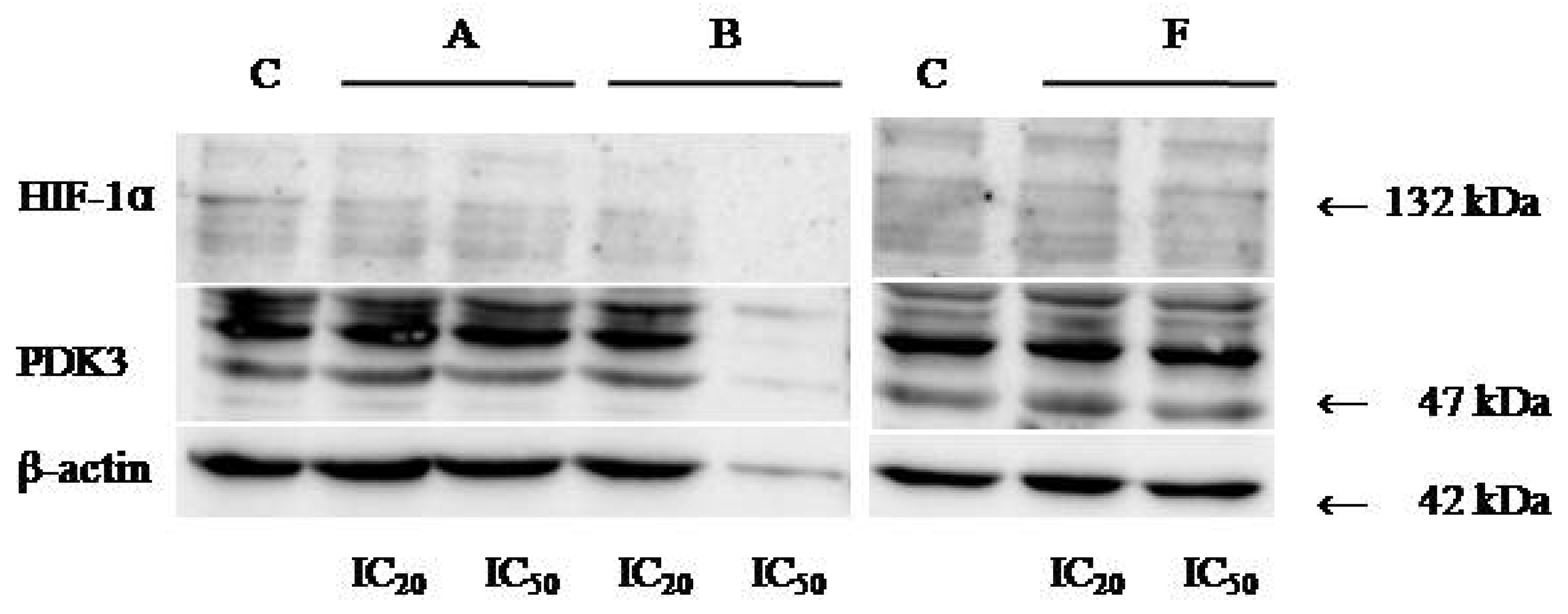 2.7. Evaluation of HIF-1α and PDK-3 Expression by Western Blot
