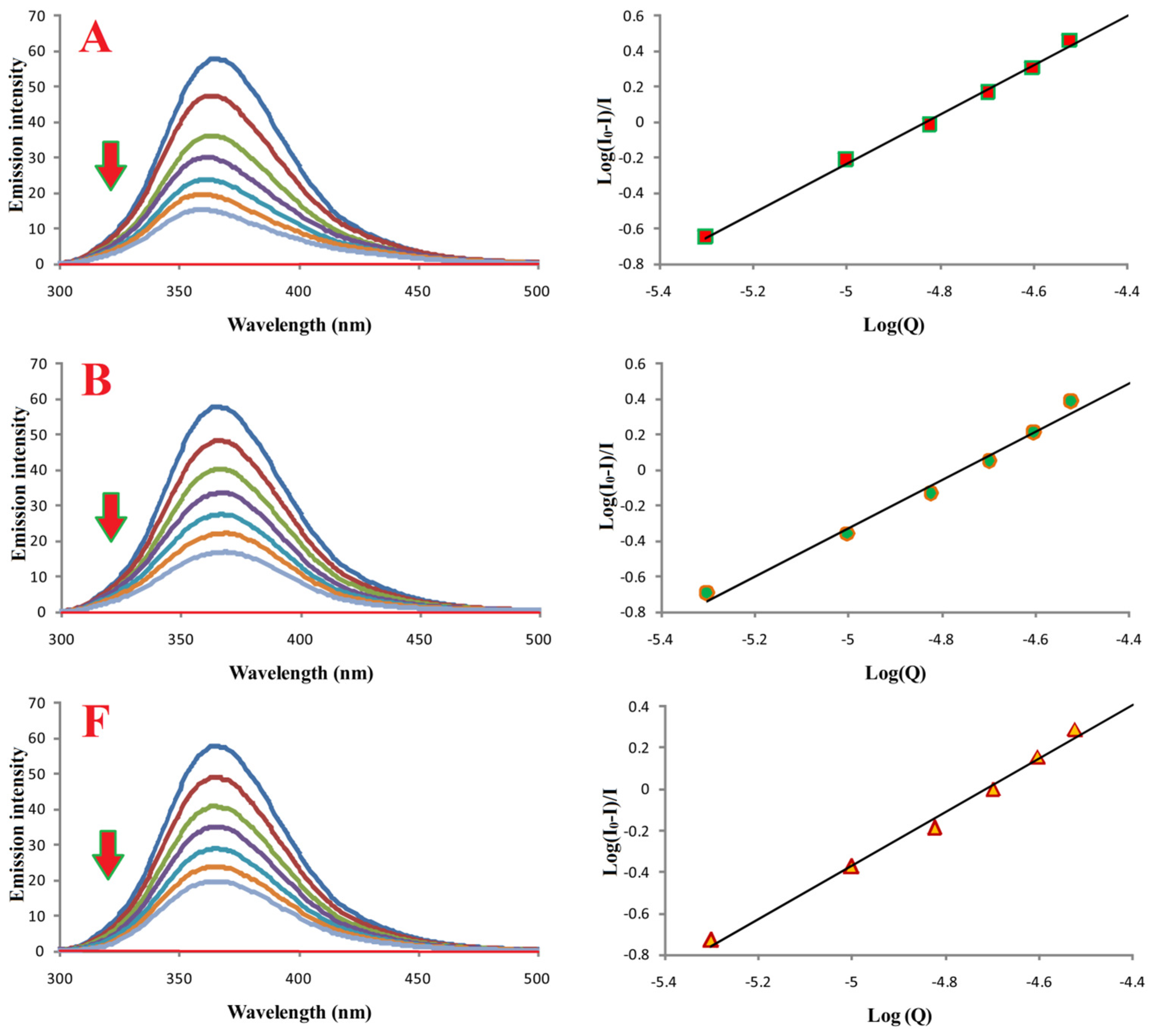 3.7. Interactions of Compounds A, B, and F with Bovine Serum Albumin