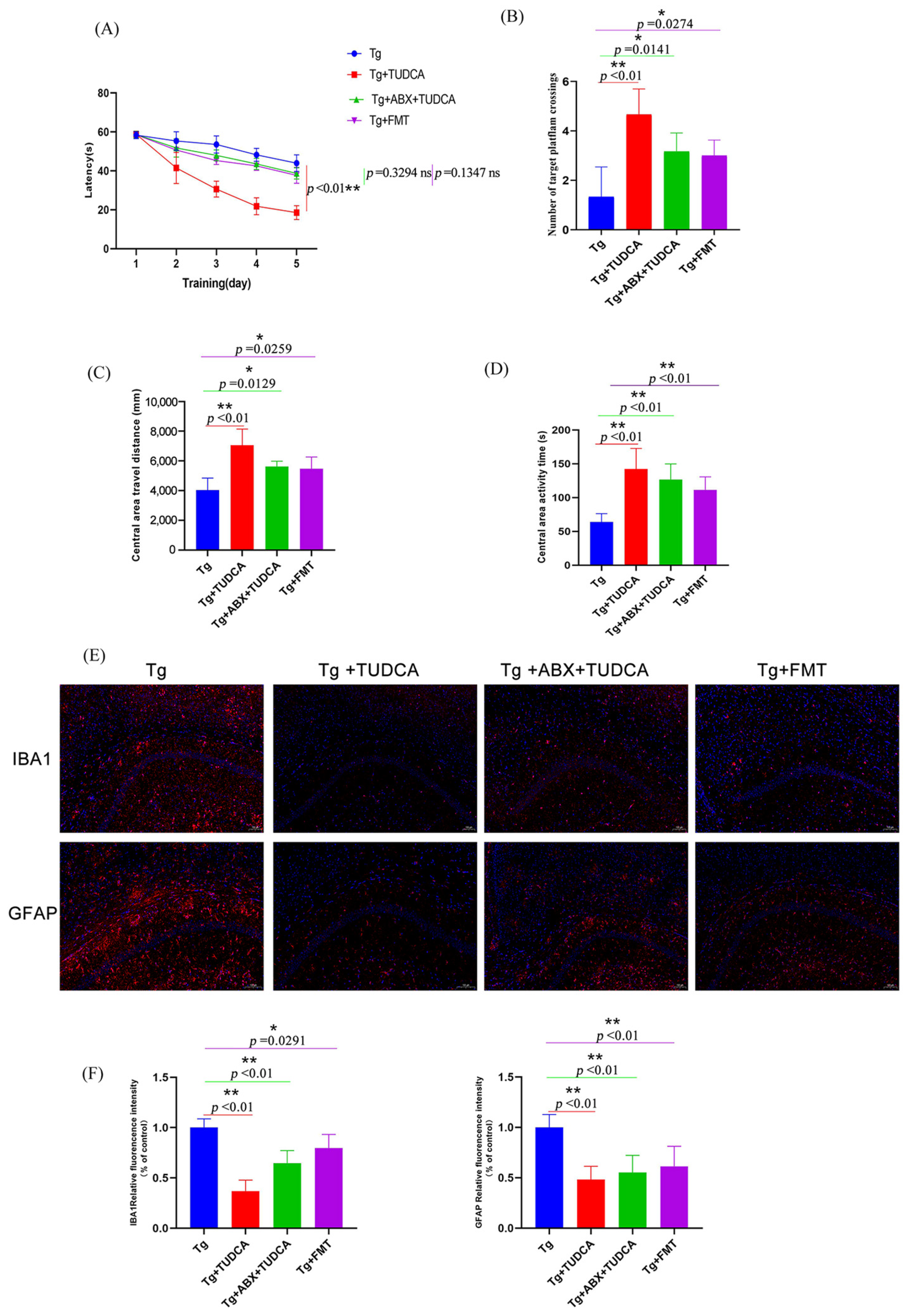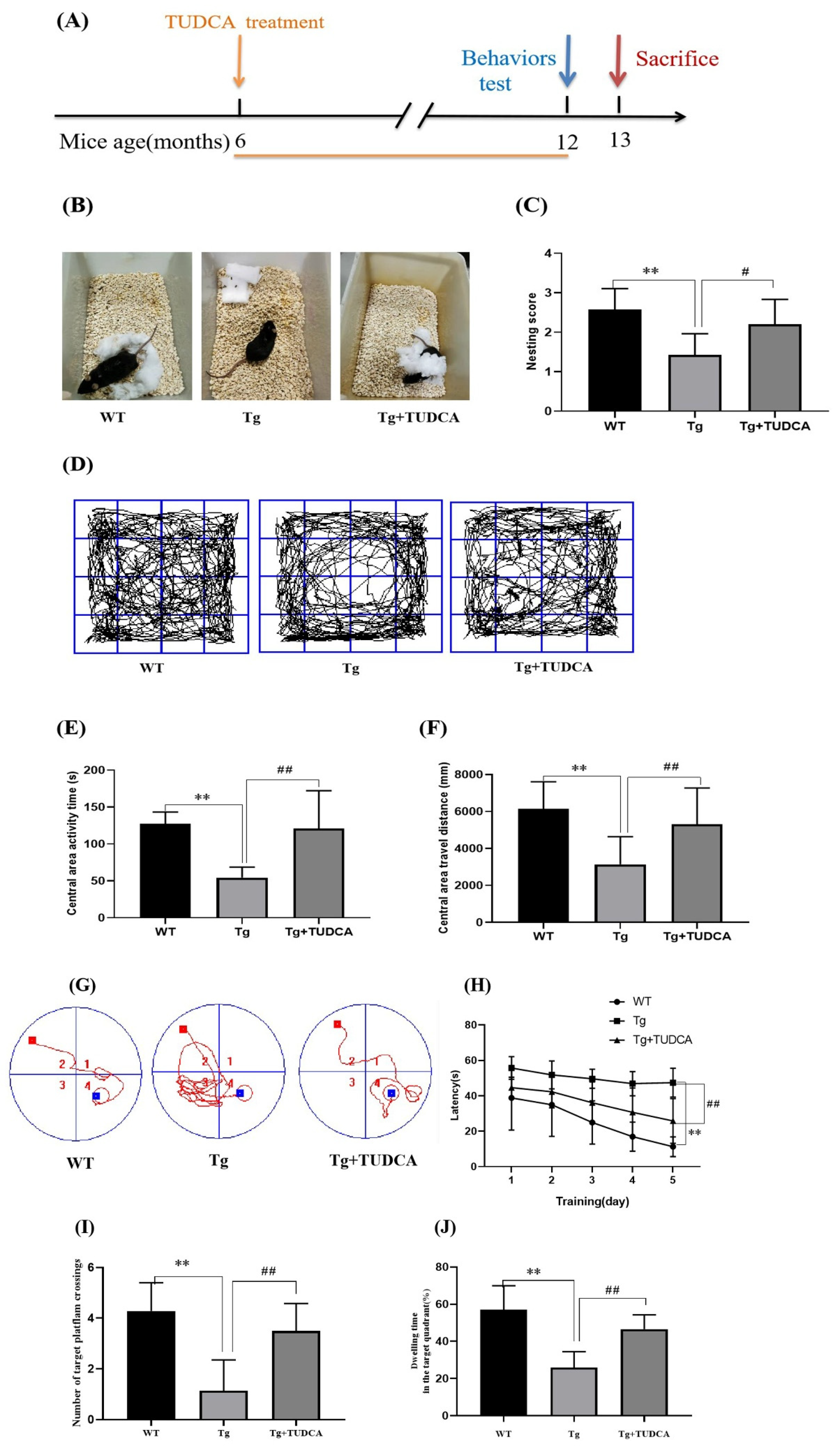 3.1. Effect of TUDCA on Cognitive Impairments in APP/PS1 Mice
