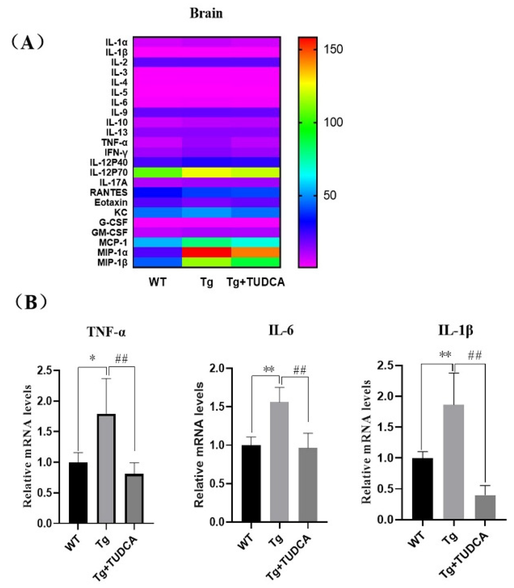 3.3. Effect of TUDCA on Neuroinflammation in APP/PS1 Mice