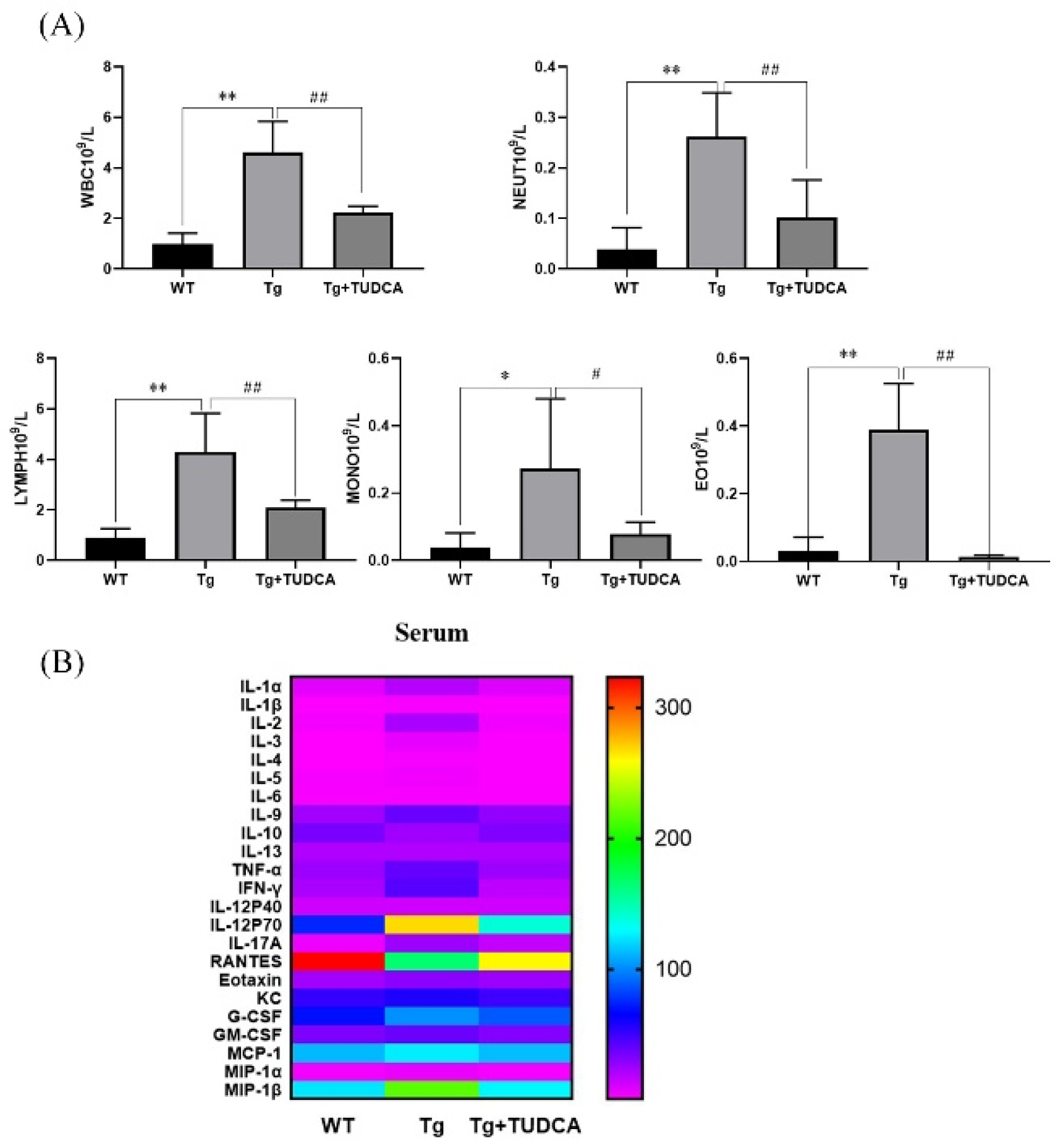 3.4. Effect of TUDCA on Inflammation in the Peripheral Region of APP/PS1 Mice
