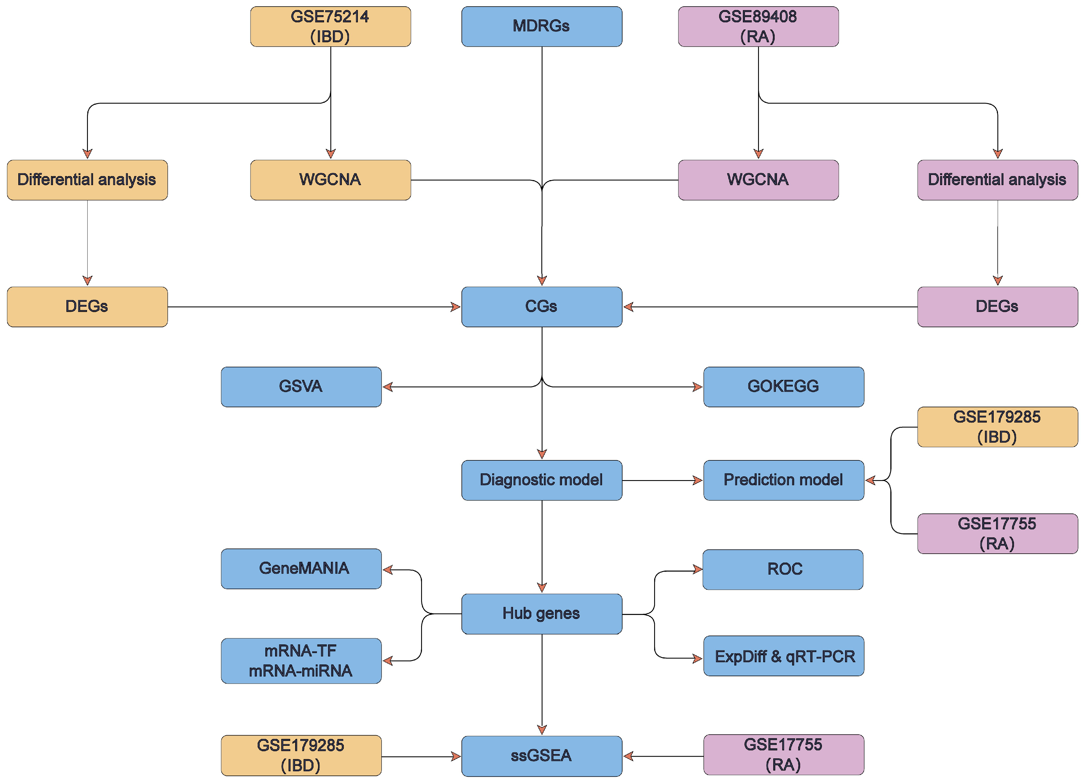 3.5. Construction of Diagnostic Model for IBD and RA