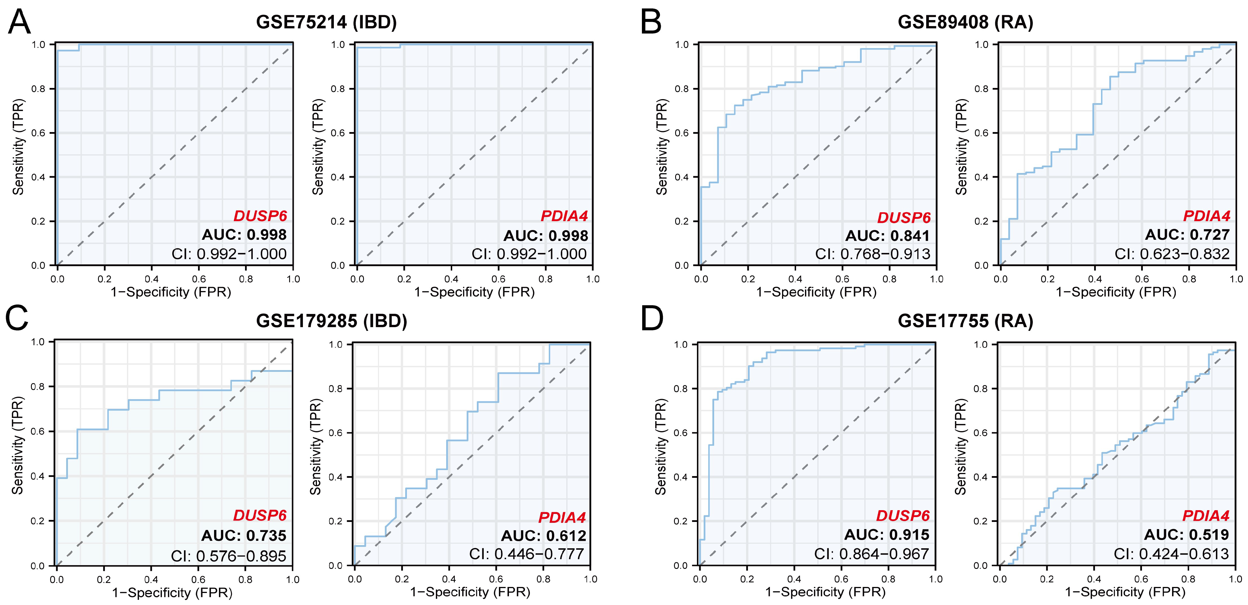 3.9. Differential Expression Analysis and Validation of DUSP6 and PDIA4