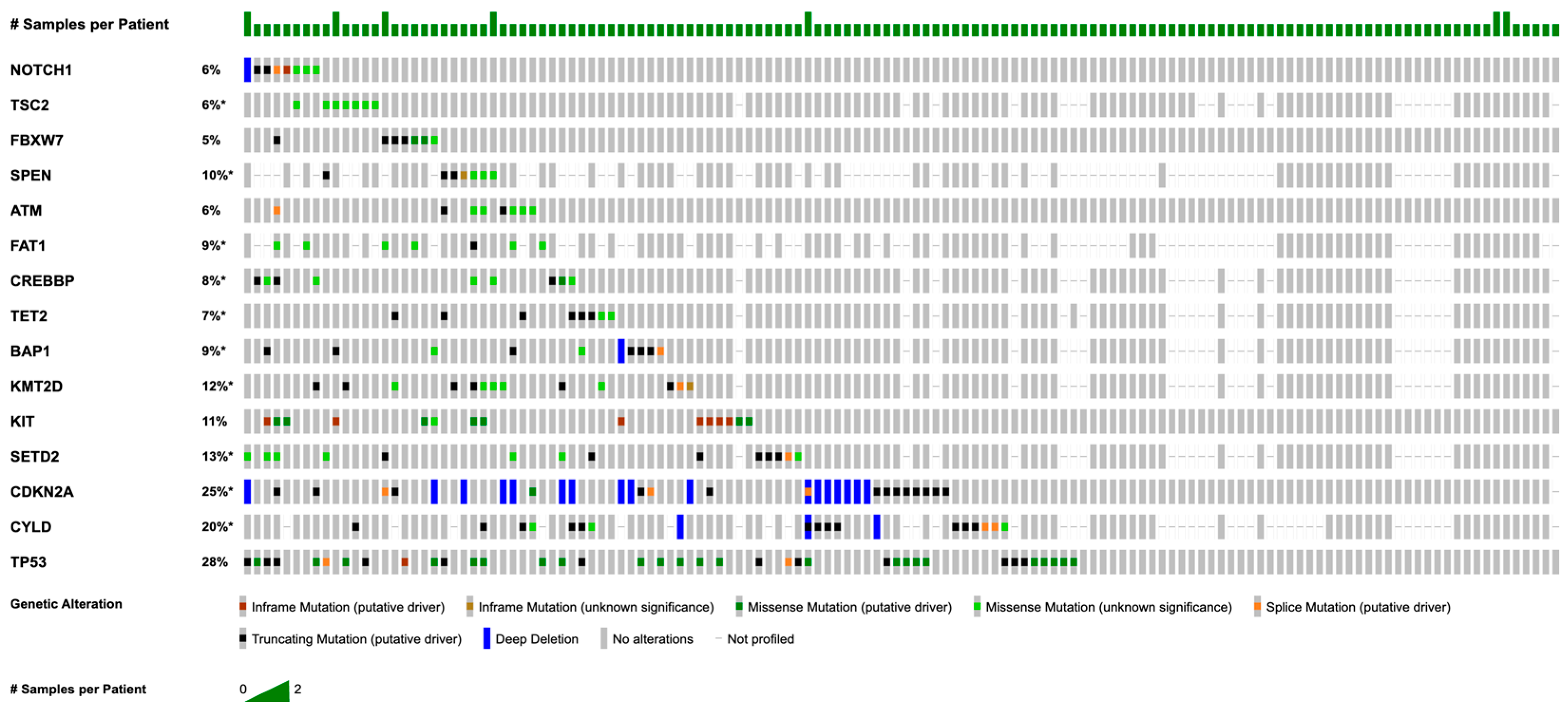 3.2. Most Common Somatic Mutations and Copy Number Alterations