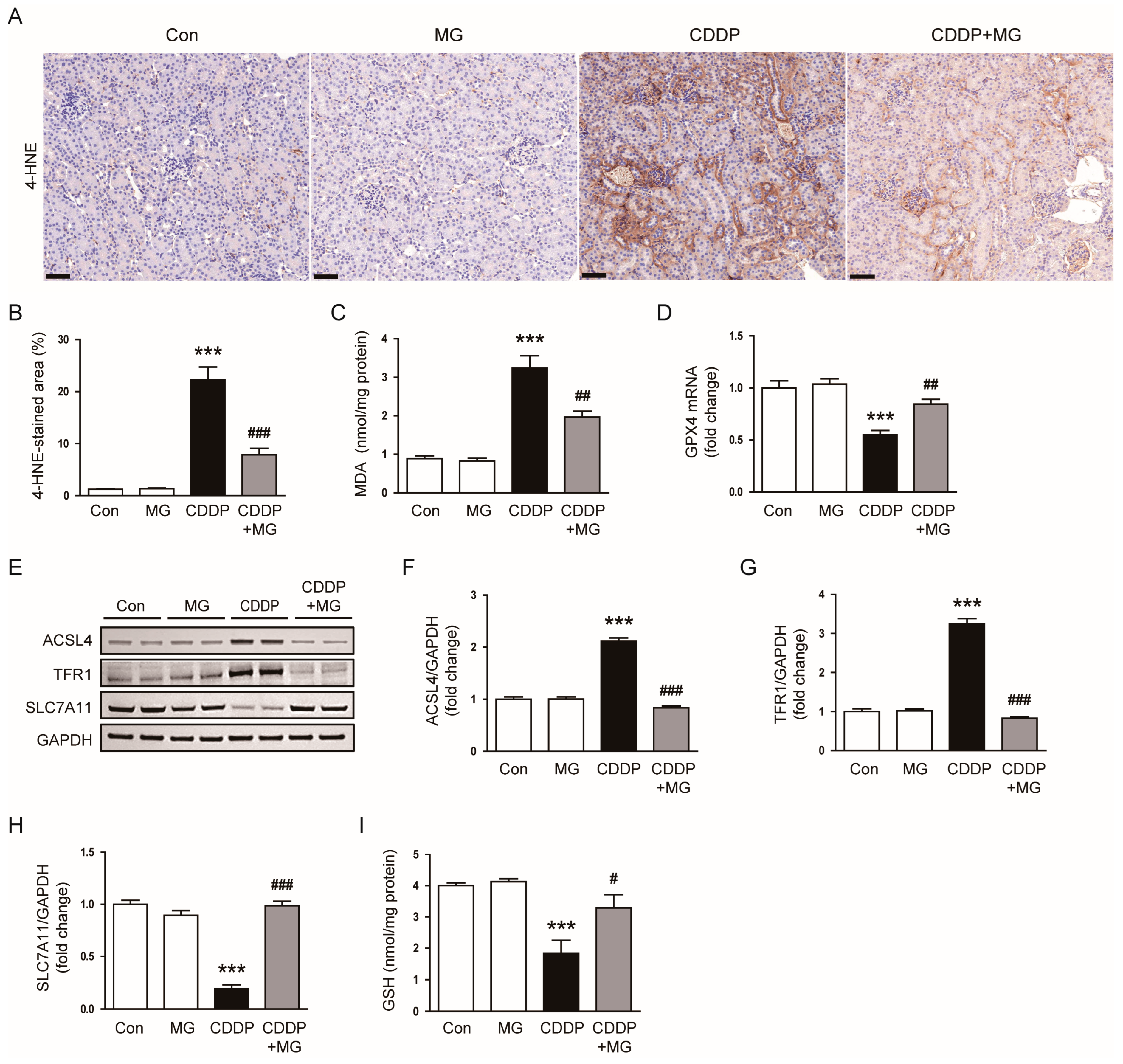 3.4. MG Inhibits CDDP-Induced Apoptosis and Ferroptosis