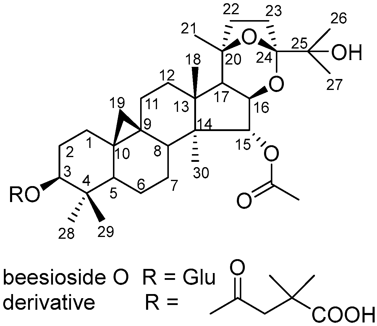 - Wu, H.; Ma, G.; Yang, Q.; Zhu, Y.; Huang, L.; Tian, Y.; Yang, X.; Zhang, M.; Chen, C.H.; Morris-Natschke, S.L.; et al. Discovery and synthesis of novel beesioside I derivatives with potent anti-HIV activity. Eur. J. Med. Chem. 2019, 166, 159–166. [Google Scholar] [CrossRef] [PubMed]