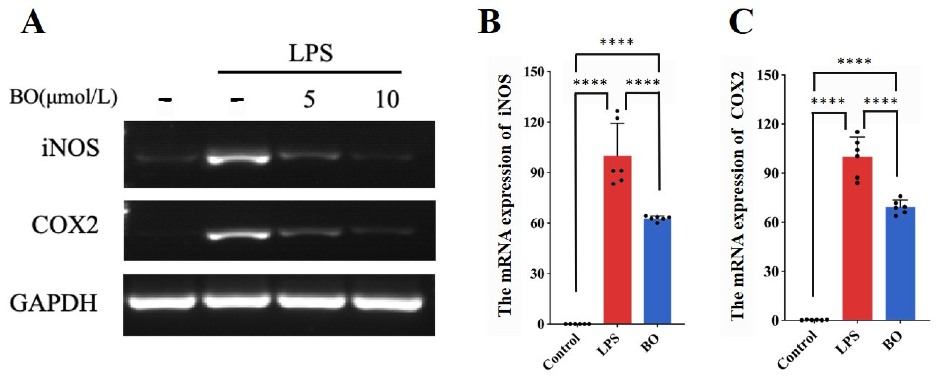 3.4. BO Inhibits LPS-Induced iNOS and COX-2