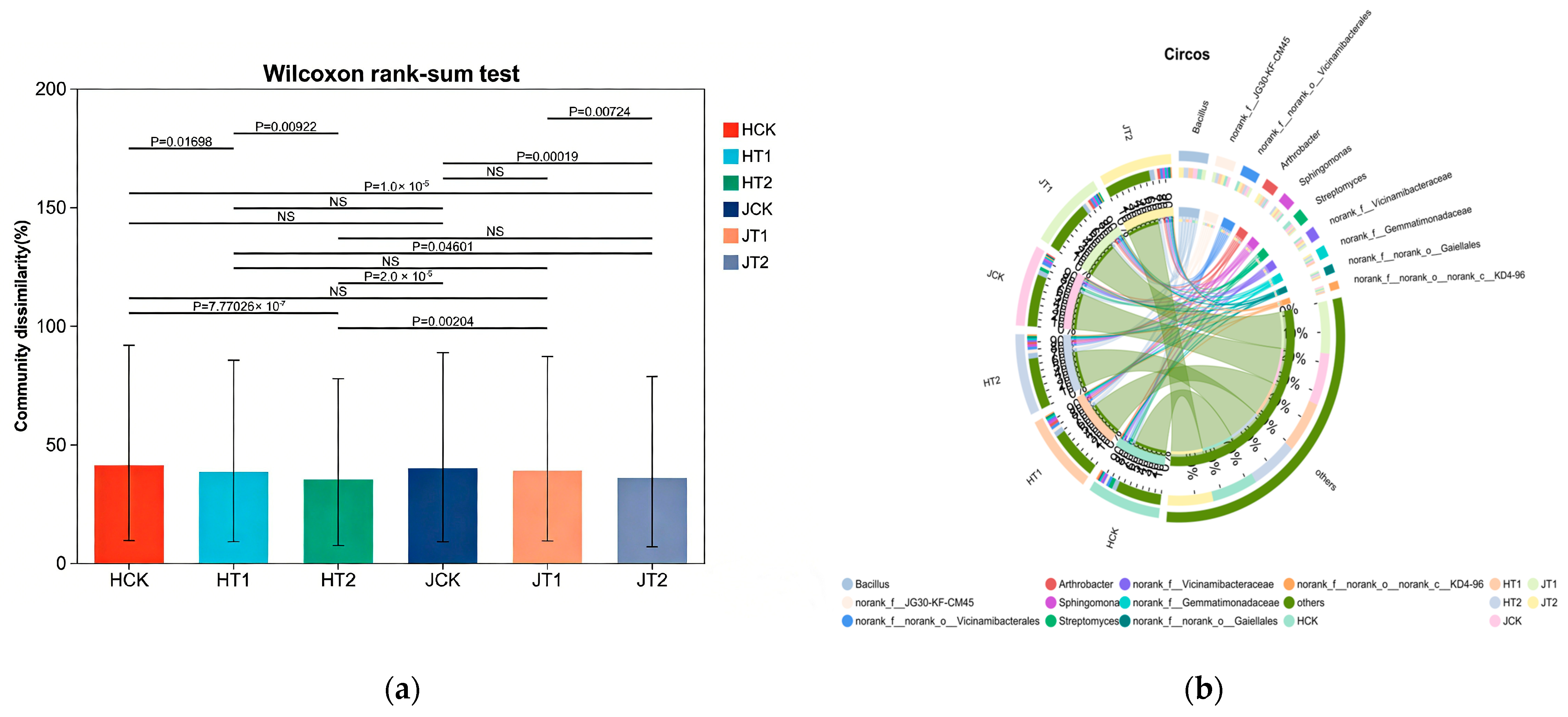 4.2. Impact of Biochar on the Diversity and Structure of the Sorghum Rhizosphere Microbial Community