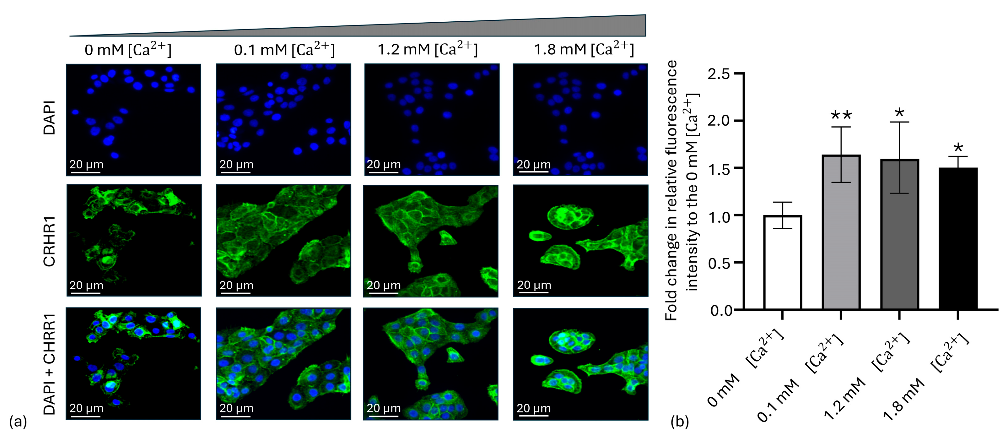 3.1. Fluorescence Intensity Assessment of CRHR1 and CRHR2 Expression in HaCaT Cell Line Under Calcium-Induced Differentiation