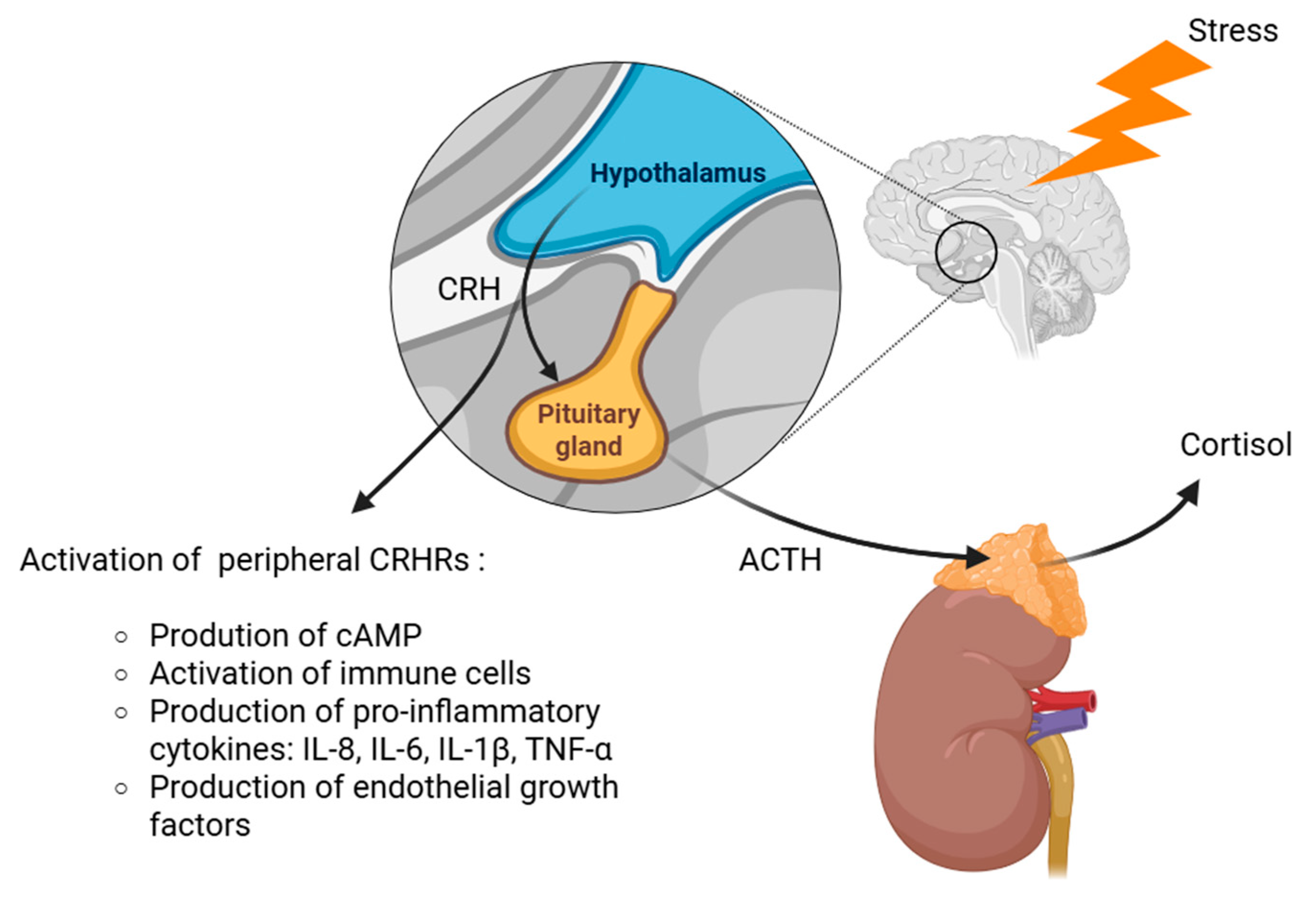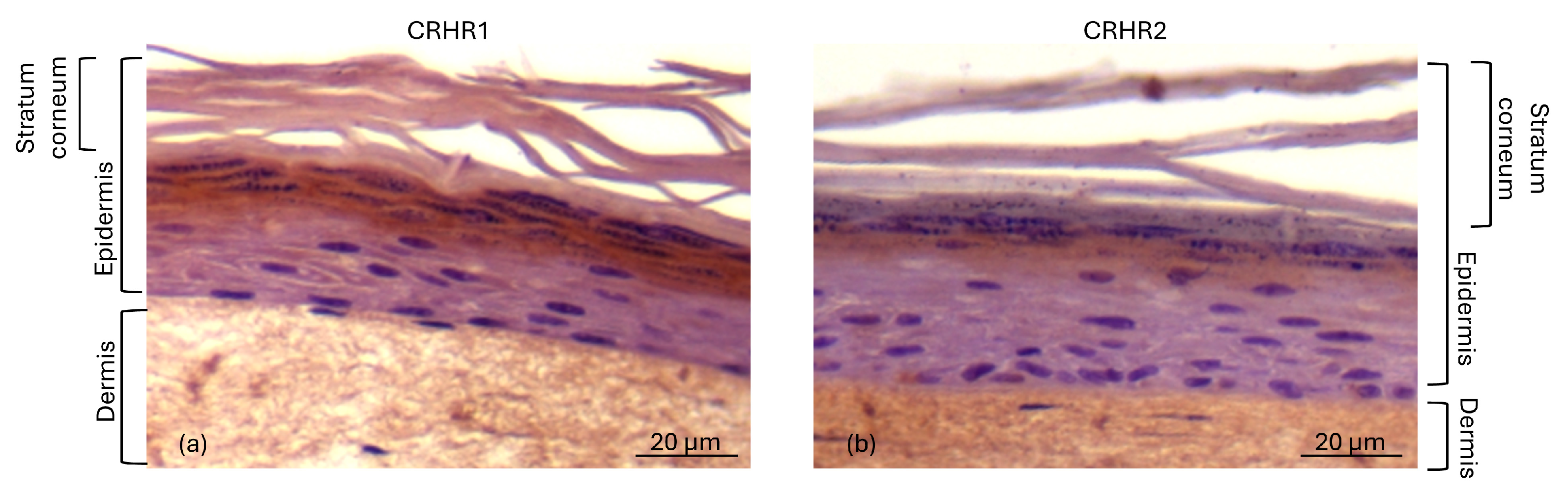 - Slominski, A.T.; Botchkarev, V.; Choudhry, M.; Fazal, N.; Fechner, K.; Furkert, J.; Krause, E.; Roloff, B.; Sayeed, M.; Wei, E.; et al. Cutaneous Expression of CRH and CRH-R: Is There a “Skin Stress Response System?”. Ann. N. Y. Acad. Sci. 1999, 885, 287–311. [Google Scholar] [CrossRef]
