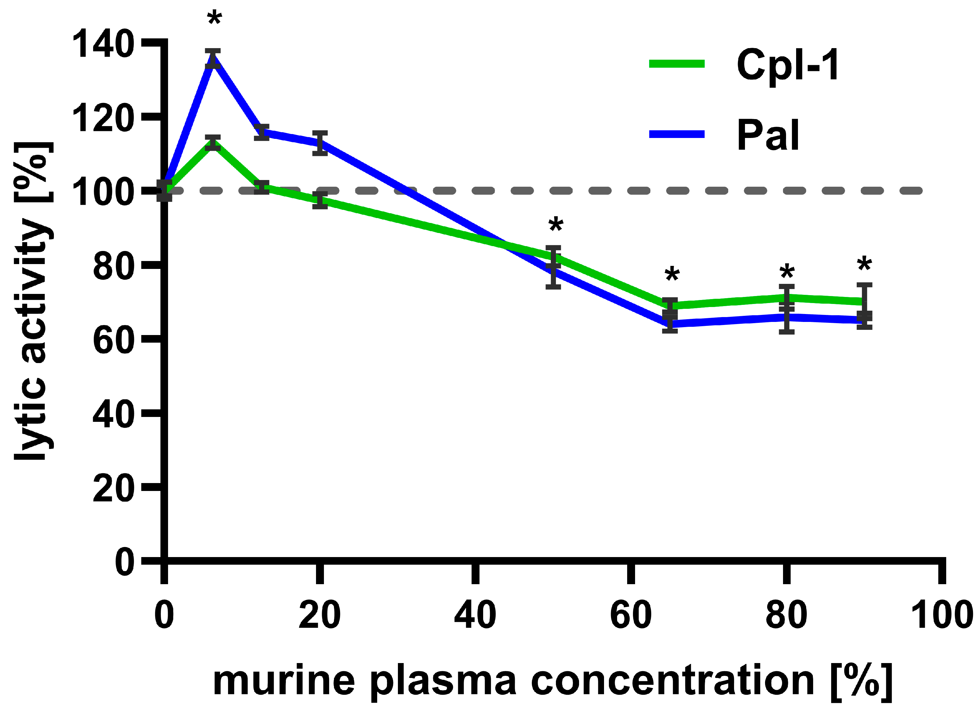 3.1. Cpl-1 and Pal Endolysin Activity Is Impaired in High Concentrations of Murine Plasma