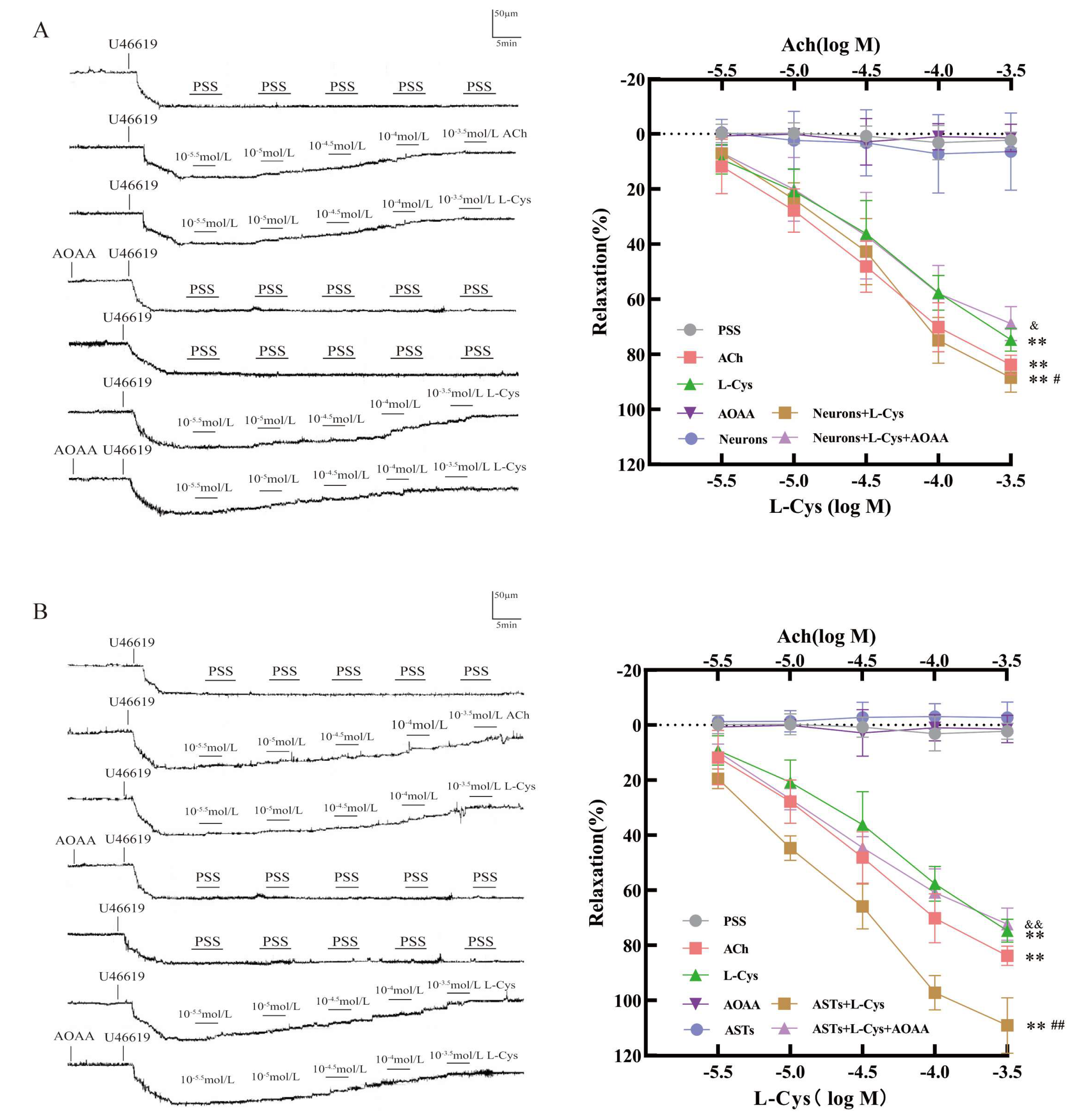 3.4. Mediation of the CBS in Rat ASTs in L-Cys-Induced Vasorelaxation in Rat MCA