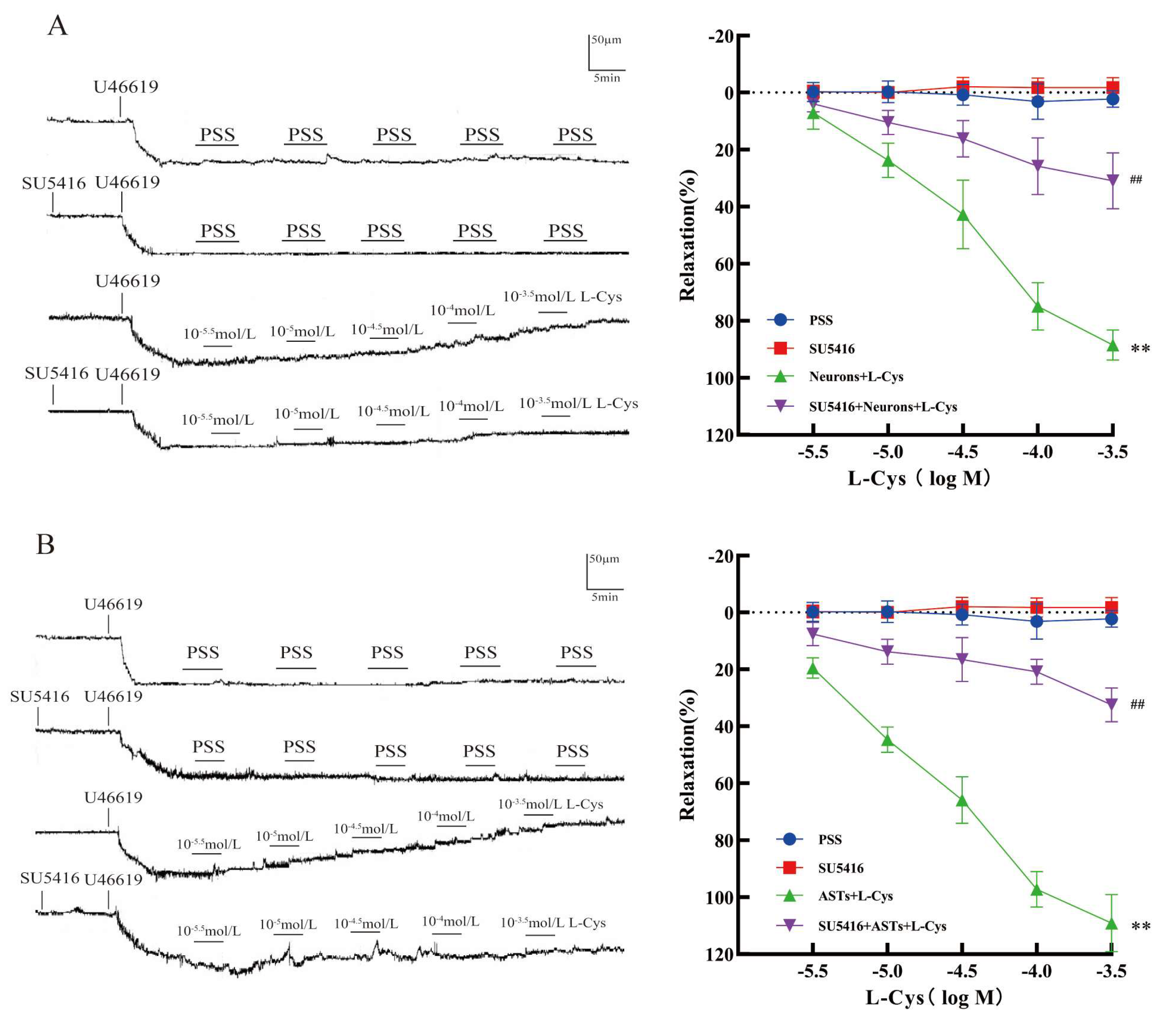 3.5. Effect of SU5416 on L-Cys-Induced Relaxation of Rat MCA Mediated by the CBS in Rat Nerve Cells