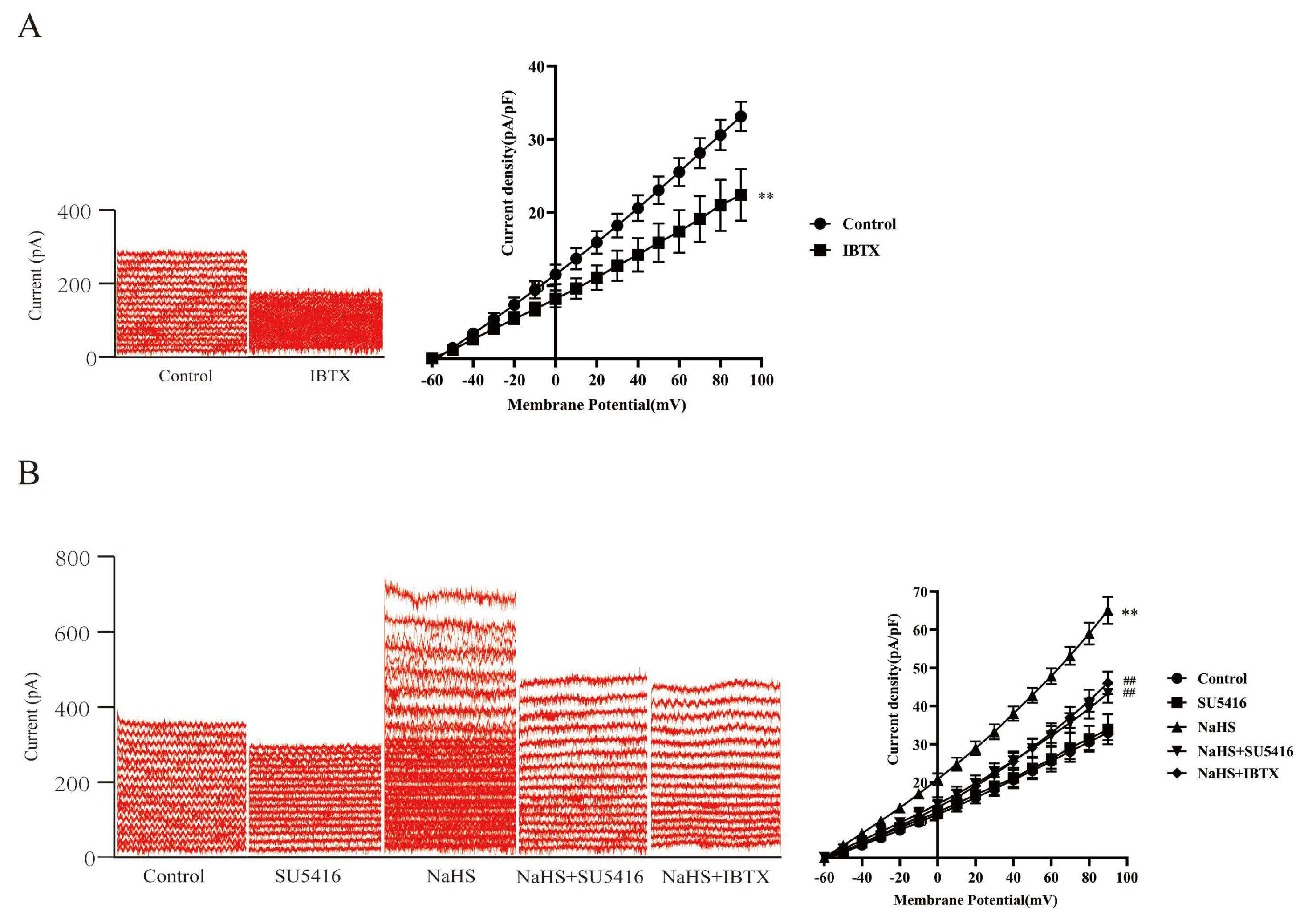 3.7. Effect of SU5416 on Exogenous H2S-Increased Current of BKCa Channels in Rat MCA VSMCs