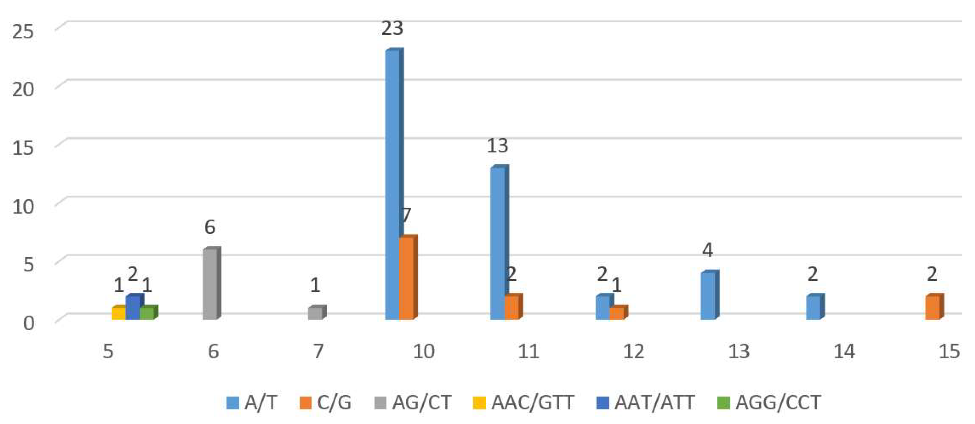- Tautz, D. Hypervariability of simple sequences as a general source for polymorphic DNA markers. Nucleic Acids Res. 1989, 17, 6463–6471. [Google Scholar] [CrossRef]