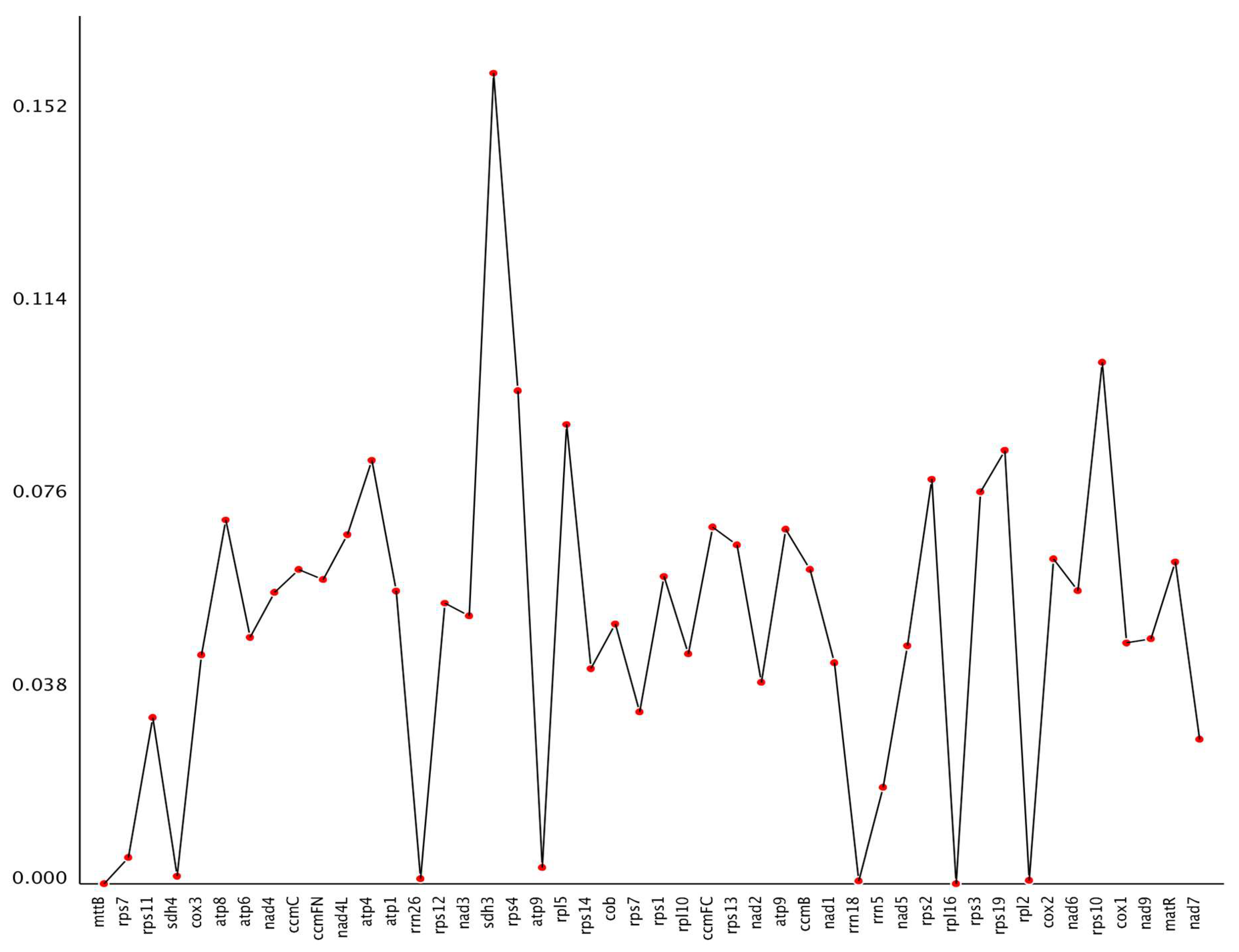 - Smith, D.R. Updating our view of organelle genome nucleotide landscape. Front. Genet. 2012, 3, 175. [Google Scholar] [CrossRef]