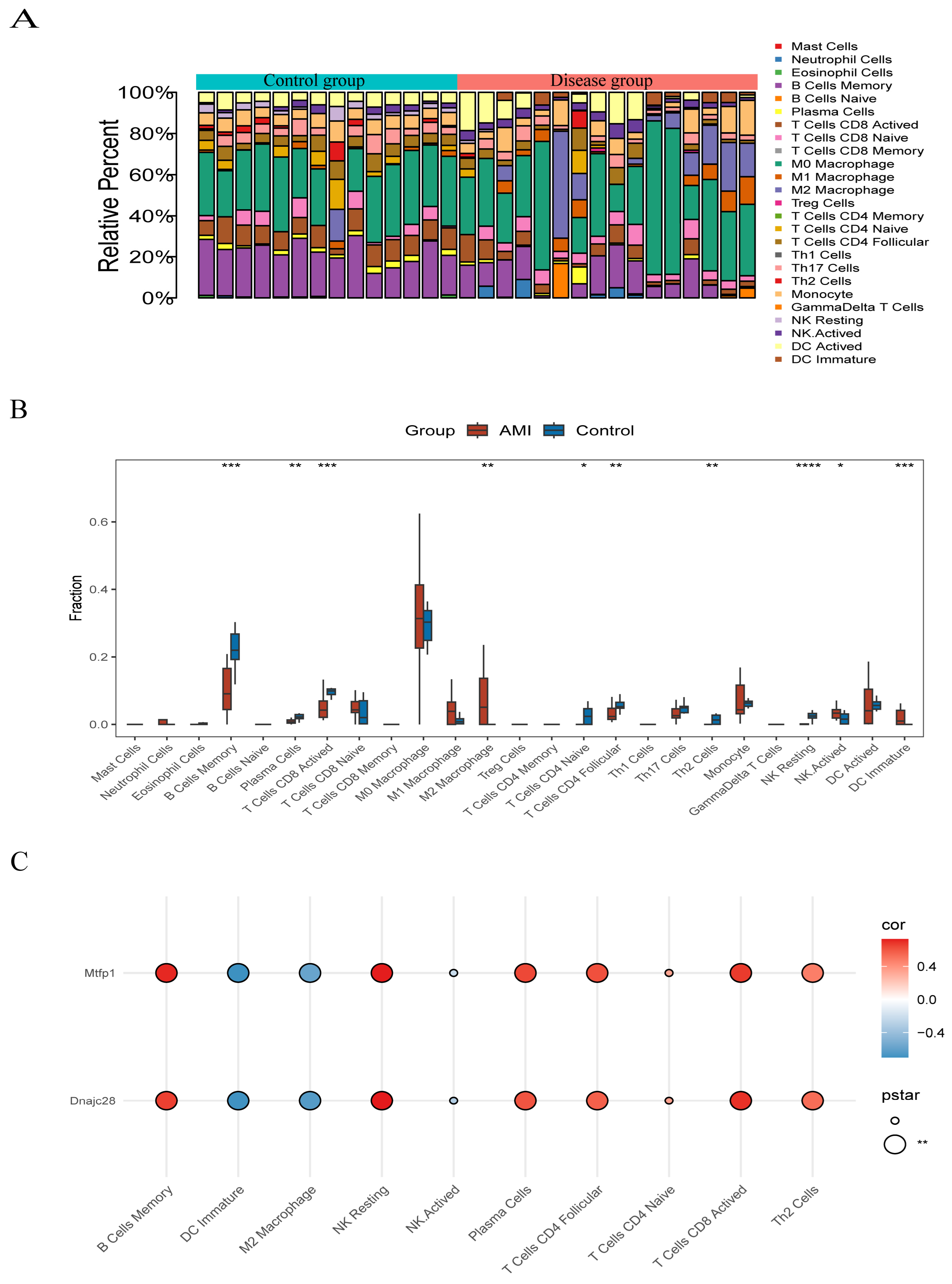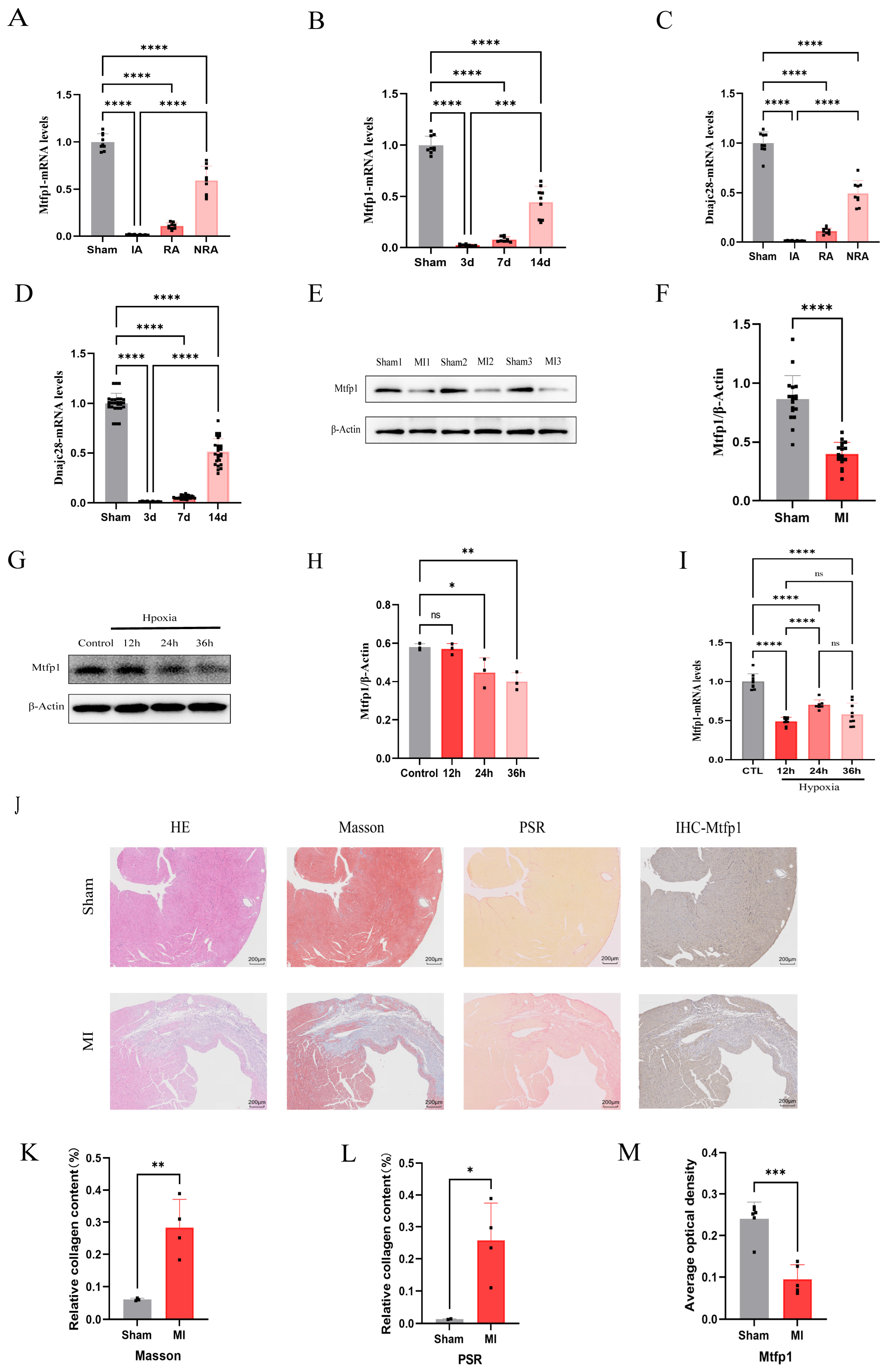 3.6. Expression of DNAJC28 and MTFP1 in Mouse Myocardial Infarction Model and Myocardial Cell Hypoxia Model In Vitro