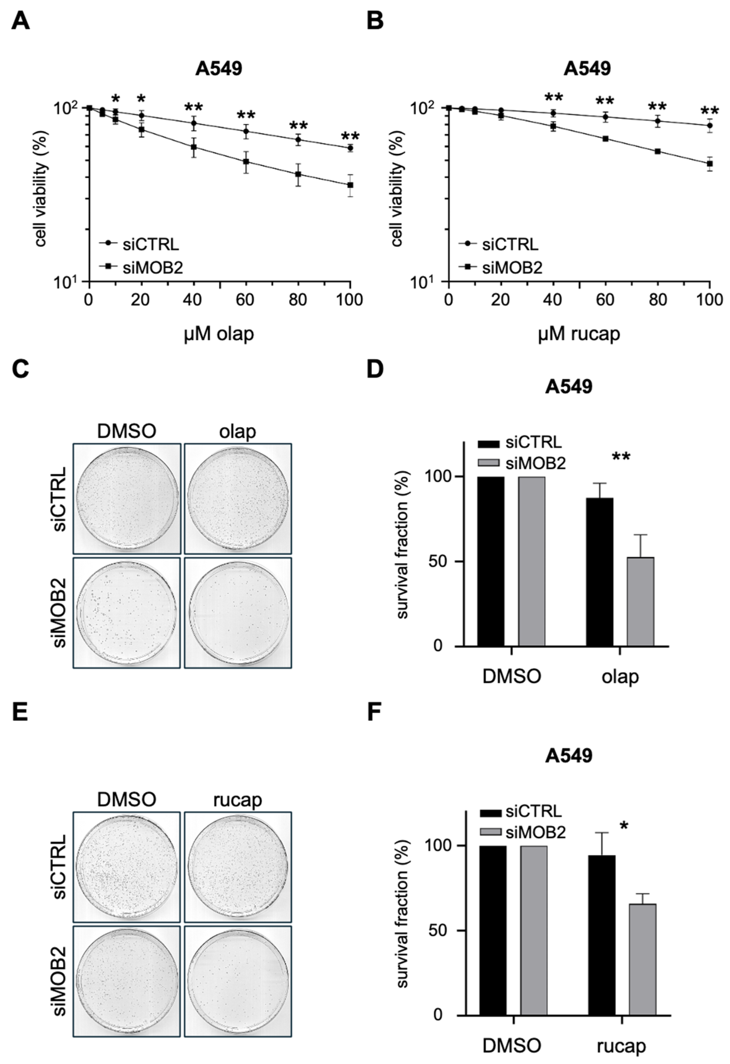 3.1. hMOB2 Loss Sensitizes A549 Lung Cancer Cells to PARP Inhibition