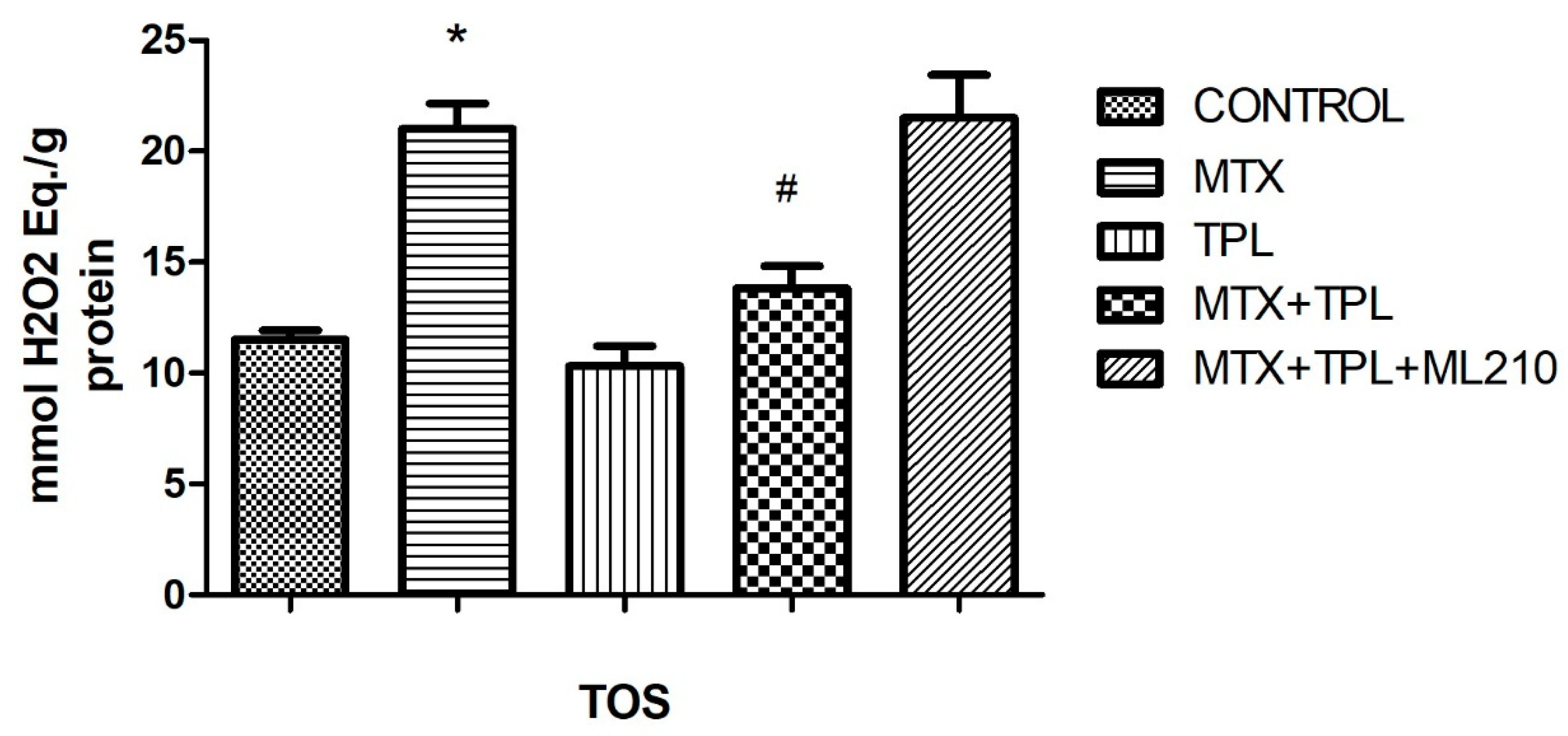 APA StyleArpağ, O. F., Selimli, F., Haskan, A. C., Altun, M. S., Mete, S., & Kaplan, H. M. (2026). Tempol Attenuates Methotrexate-Induced Osteotoxicity via Antioxidant Mechanisms: Impairment of Protection by GPX4 Inhibition Through ML210. Current Issues in Molecular Biology, 48(3), 326. https://doi.org/10.3390/cimb48030326