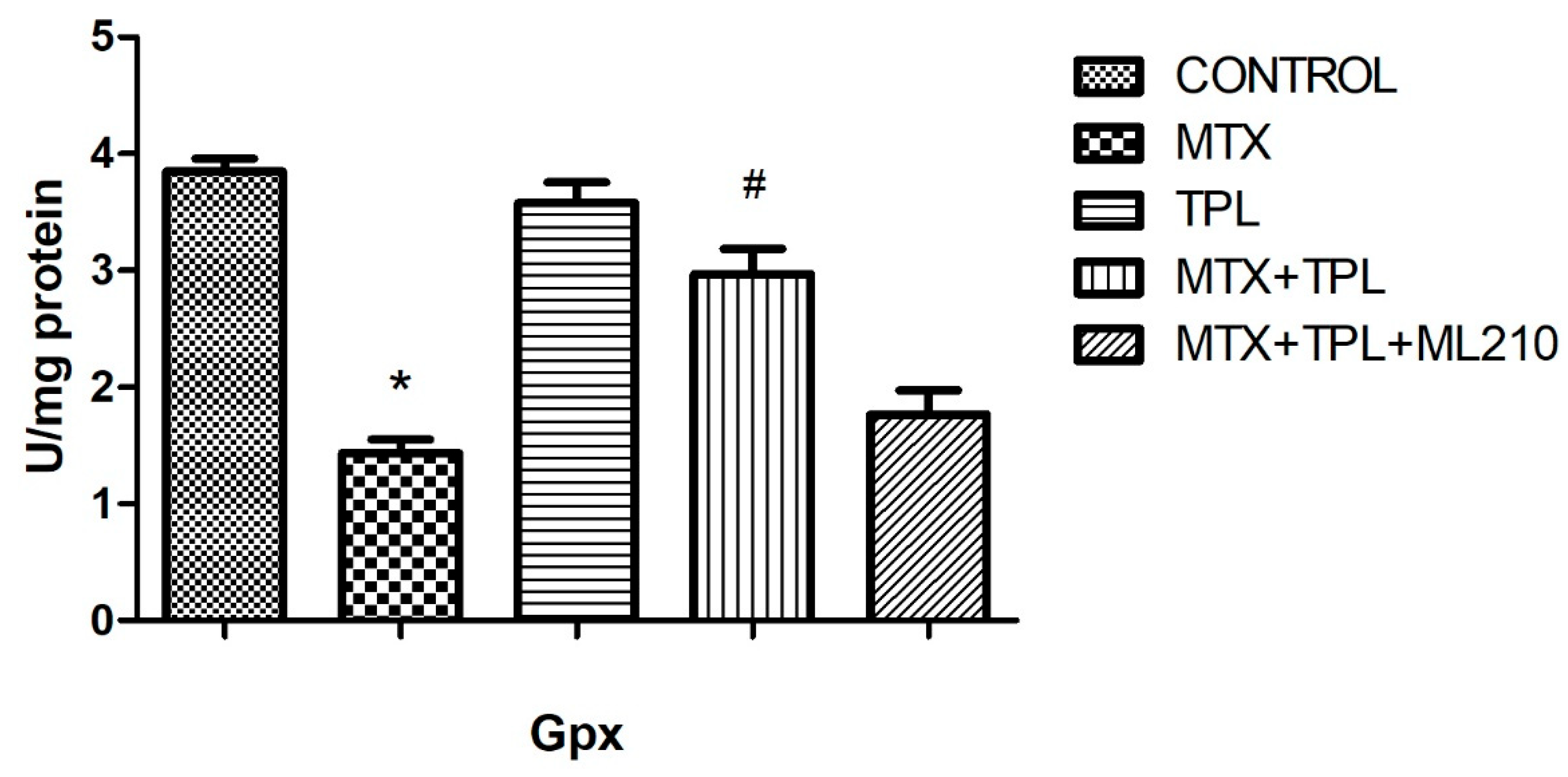 | Control | MTX | TPL | MTX + TPL | MTX + TPL + ML210 | |