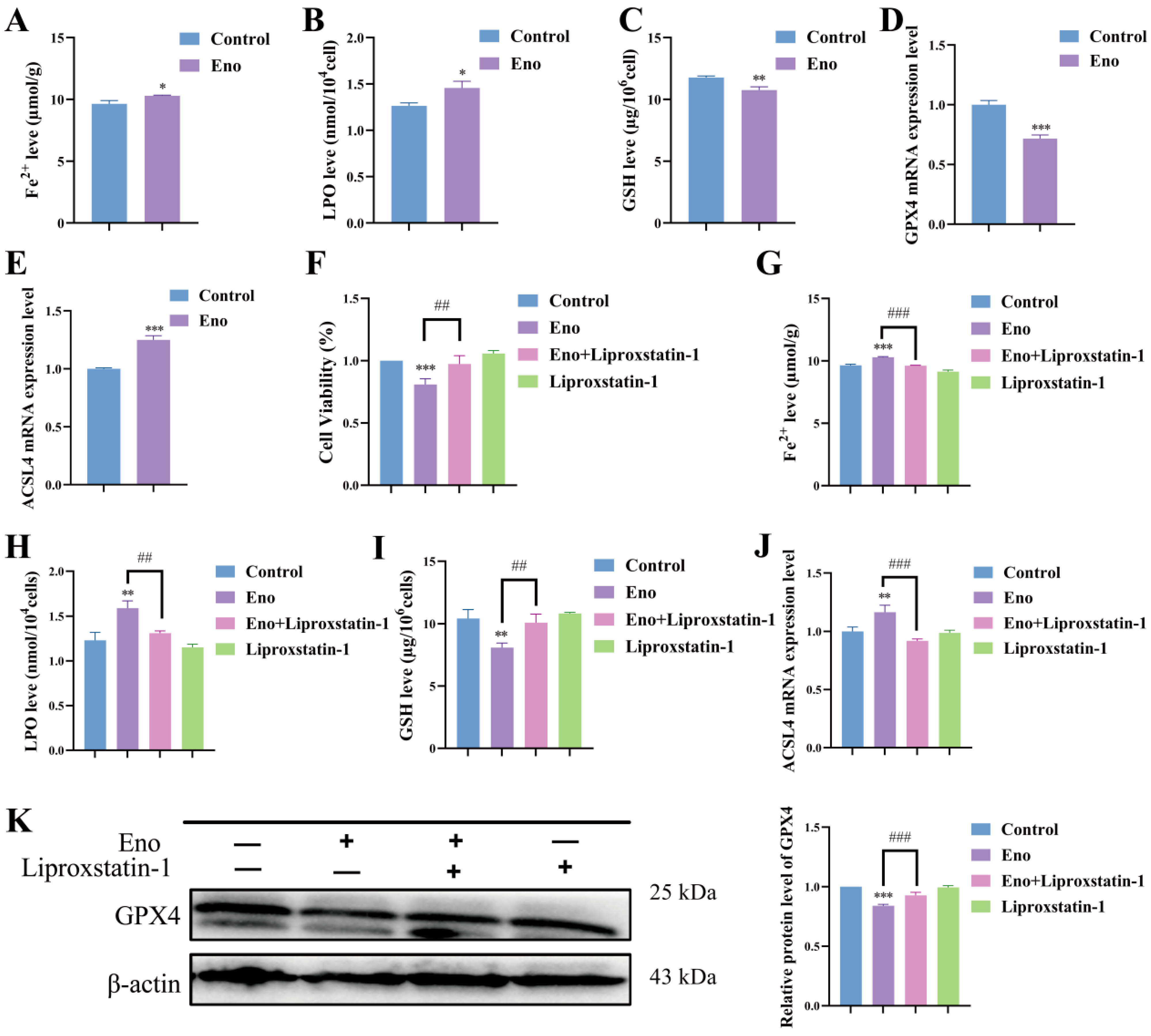 3.3. Eno Inhibits HepG2 Cell Function Through Ferroptosis