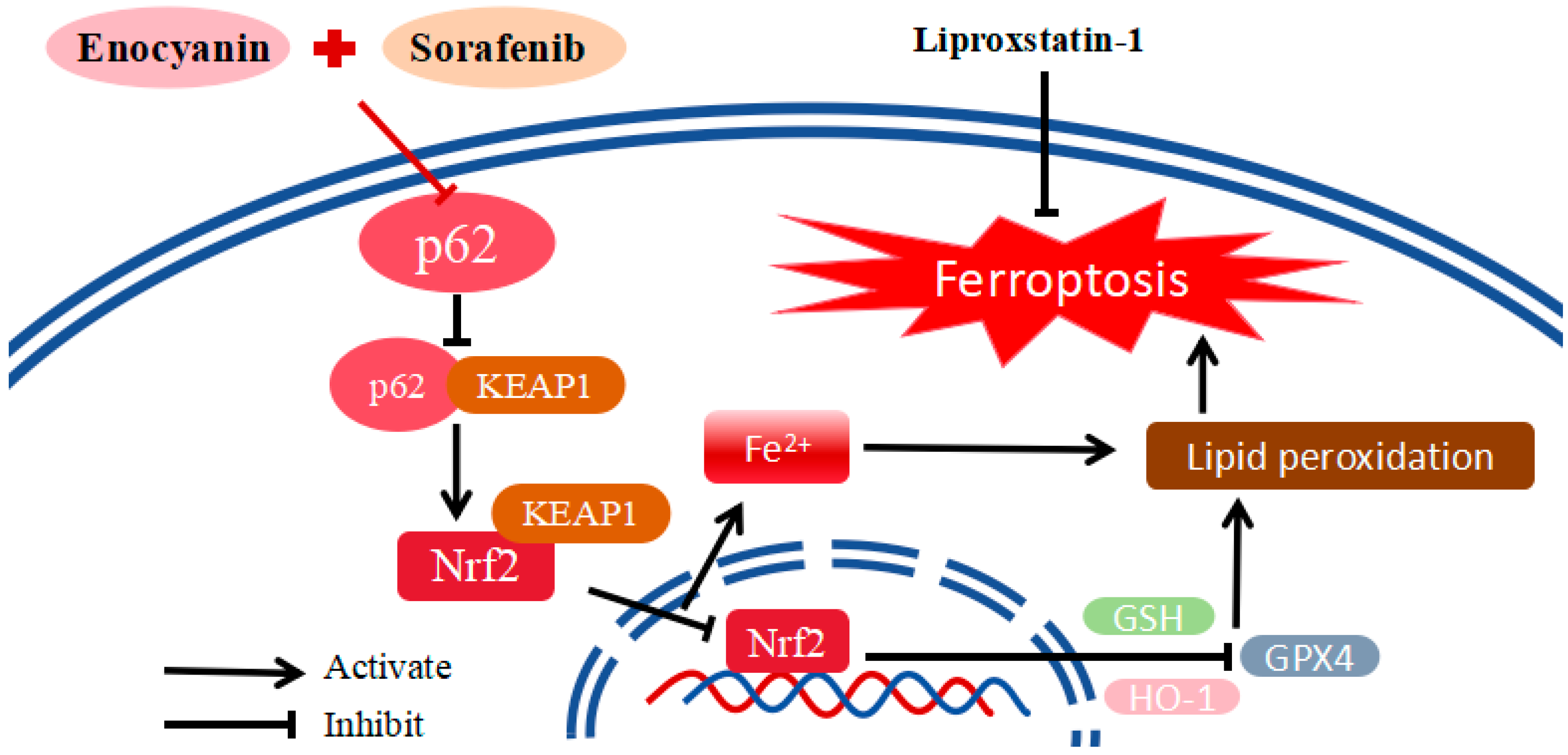 Tian M, Ma J, Wei T, Meng K, Xia Y, Zong X, Bai C, Wang Z. Enocyanin Synergistically Enhances Sorafenib Sensitivity in Hepatocellular Carcinoma via Ferroptosis Induction Associated with p62/Keap1/Nrf2/HO-1 Pathway Inhibition. Current Issues in Molecular Biology. 2026; 48(4):357. https://doi.org/10.3390/cimb48040357