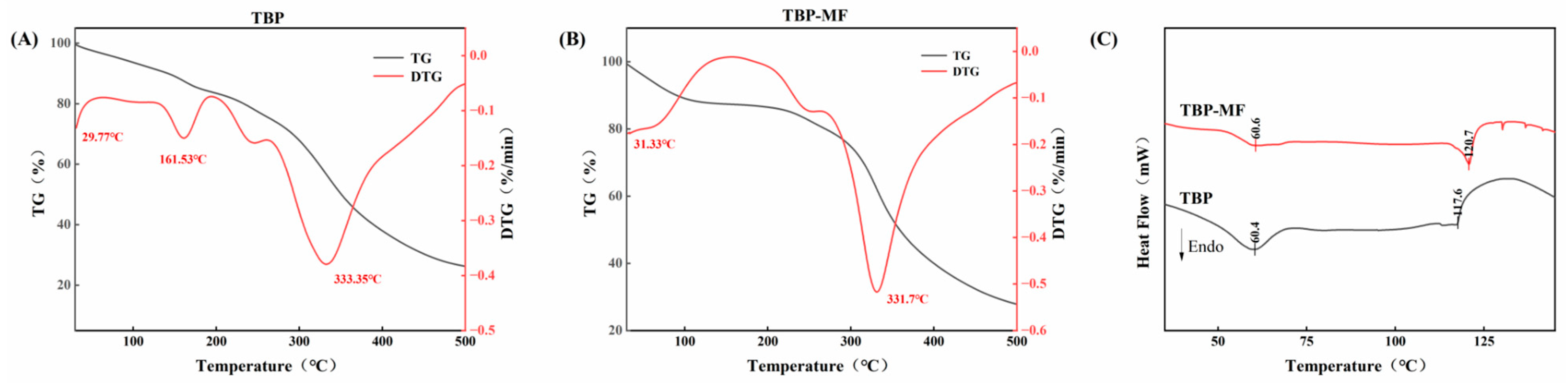 2.4. Thermal Property Analysis (TGA–DSC)