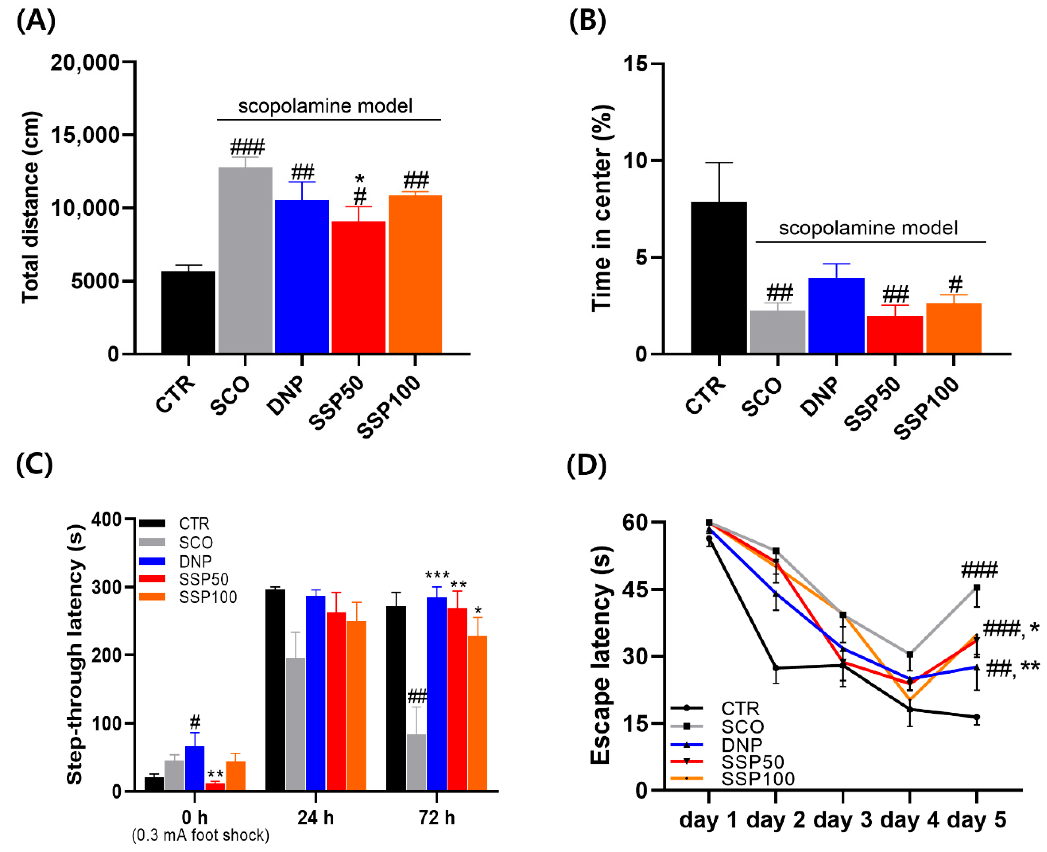 3.4. SSP Effects on Memory Retention and Spatial Learning in Behavioral Tests