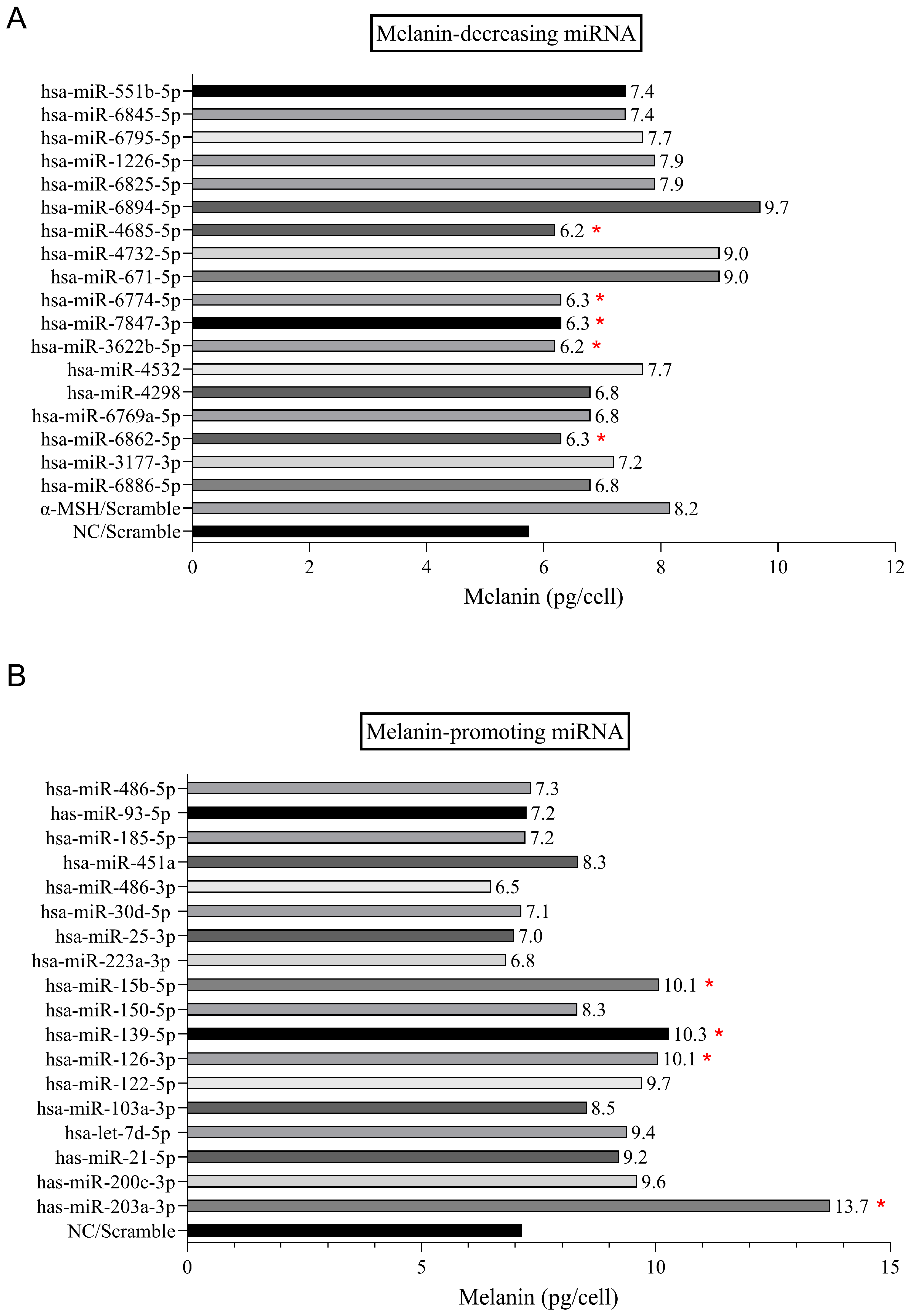 26]. Additionally, Jeon et al. profiled miRNAs in B16F10 melanoma cell-derived exosomes and identified miR-21a-5p as a potential facilitator of melanin synthesis [