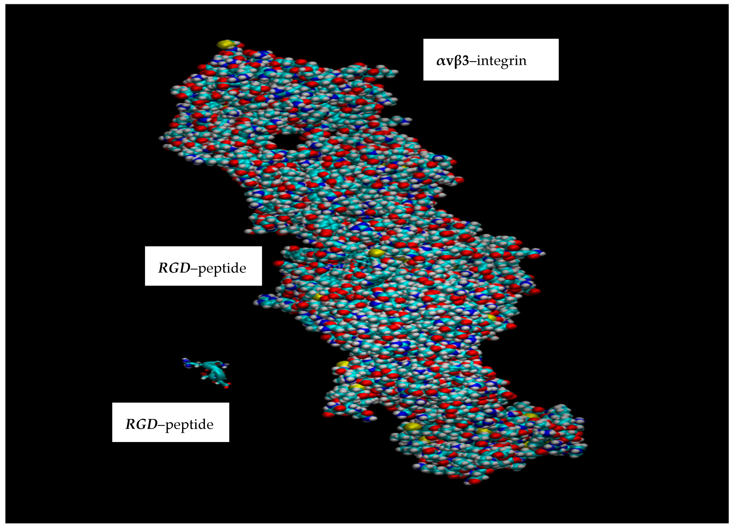 The literature data for the RGD peptide vector system in specific delivery to the avb3 integrin receptor and description of the results and examples of targeted drug delivery through this receptor, as well as the molecular basis for the targeted binding of RGD-containing peptide to integrin αvβ3 and novel linear peptides with high affinity to αvβ3 integrin in precise tumor identification, can be found in refs. [