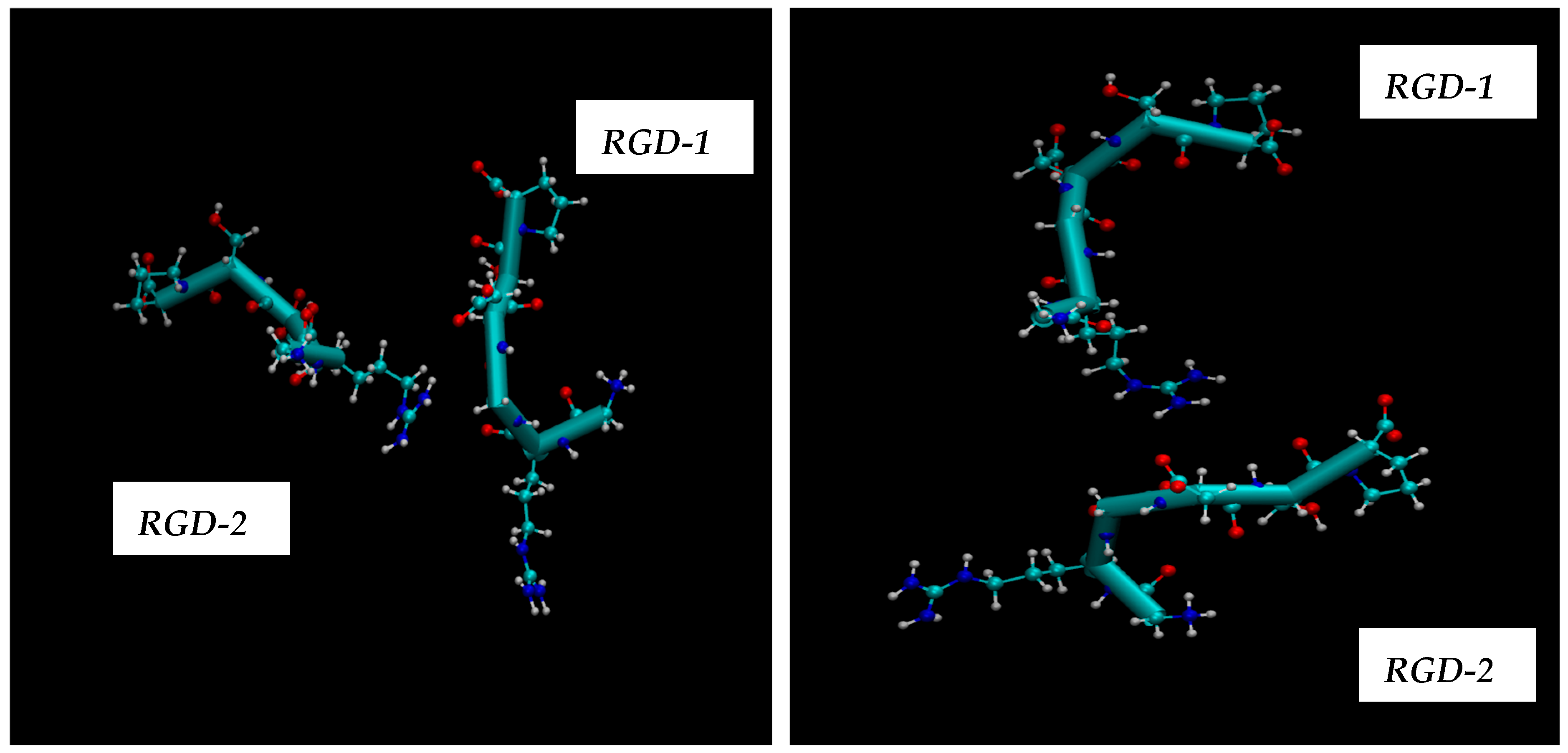 Let us note some design features of RGD peptides, i.e., “Pharmacological” feasibility of choosing a peptide structure for the purpose of their effective binding to the αvβ3 integrin receptor: