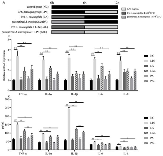3.1. Akkermansia muciniphila Ameliorated the LPS-Induced Inflammation in Caco-2 Cells