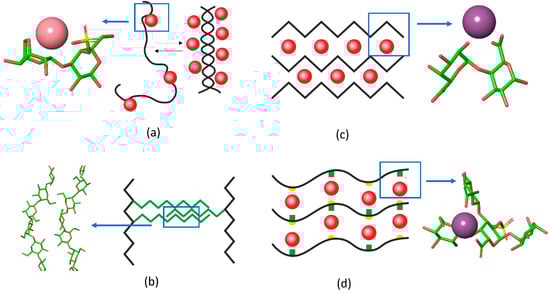 - Braccini, I.; Grasso, R.P.; Pérez, S. Conformational and configurational features of acidic polysaccharides and their interactions with calcium ions: A molecular modeling investigation. Carbohydr. Res. 1999, 317, 119–130. [Google Scholar] [CrossRef]