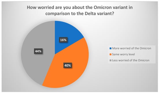 Moreover, our finding that parents with more children are less worried from Omicron indicates that they either underestimate the new threat or, possibly, cope better with the new variant. A previous report has shown that, although the difference was small, parents of more children were less likely to reach the cut-off score for anxiety during the COVID-19 pandemic []. Similarly, those who perceived their children’s risk of acquiring SARS-CoV-2 infection was low were less worried about the Omicron variant. These findings demonstrate the relationship between complacency about COVID-19 as a risk and parental worries and their intention to act in a protective manner [,].