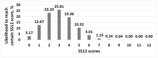 Computed distribution of likelihood to reach certain SS12 scores, assuming random performance. SS12—Sniffin’ Sticks 12.