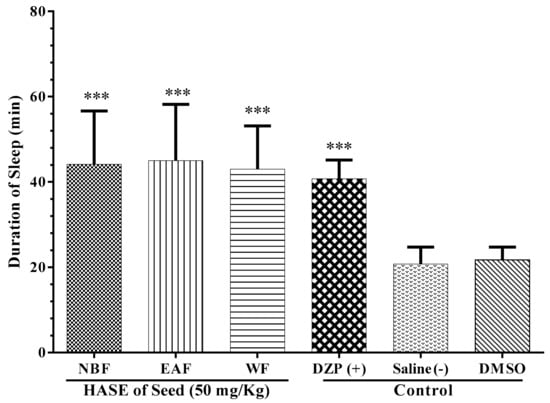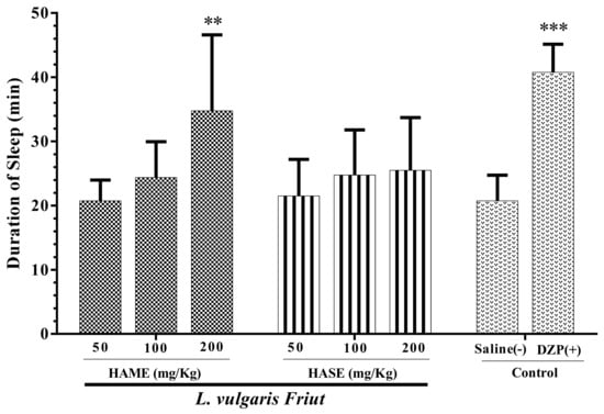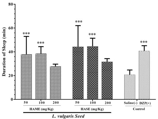 3.3. Effect of Seed Extracts of L. Vulgaris on Sleep Duration
