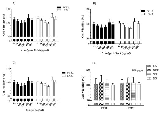3.6.2. Evaluation of the Cytotoxicity Effects of C. pepo and L. vulgaris