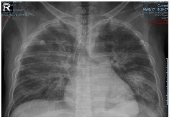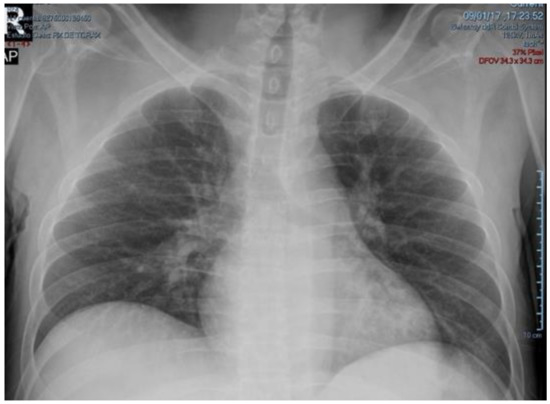 CxR at admission showing no signs of alveolar infiltrates or pleural effusions.