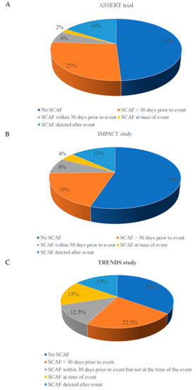 - Daoud, E.G.; Glotzer, T.V.; Wyse, D.G.; Ezekowitz, M.D.; Hilker, C.; Koehler, J.; Ziegler, P.D. Temporal relationship of atrial tachyarrhythmias, cerebrovascular events, and systemic emboli based on stored device data: A subgroup analysis of TRENDS. Heart Rhythm 2011, 8, 1416–1423. [Google Scholar] [CrossRef]