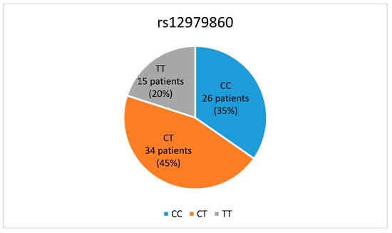 In our study, the CTrs12979860 genotype was found to be the most common SNP variation in patients with recurrent HSV disease, followed by CCrs12979860 and TTrs12979860.