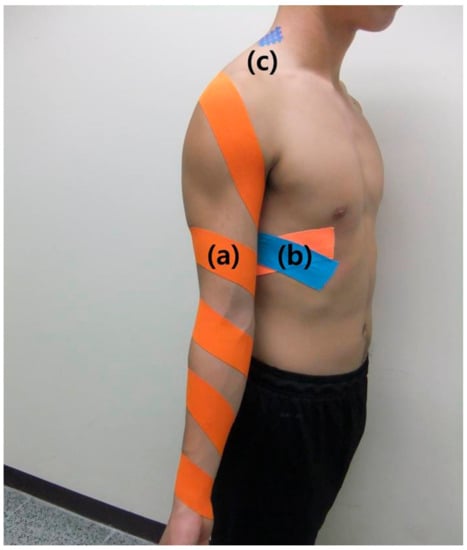 - Kim, B.J.; Lee, J.H. Effects of scapula-upward taping using kinesiology tape in a patient with shoulder pain caused by scapular downward rotation. J. Phys. Ther. Sci. 2015, 27, 547–548. [Google Scholar] [CrossRef][Green Version]