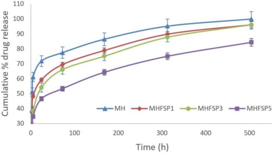Release profiles of MH, MHFSP1, MHFSP3 and MHFSP5 fibers.