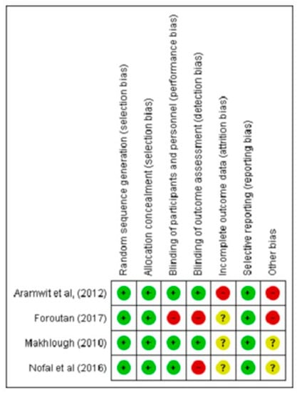 - Higgins, J.P.; Altman, D.G. Chapter 8: Assessing risk of bias in included studies. In Cochrane Handbook for Systematic Reviews of Interventions. Available online: http://handbook.cochrane.org/chapter_8/8_assessing_risk_of_bias_in_included_studies.htm (accessed on 26 February 2019).