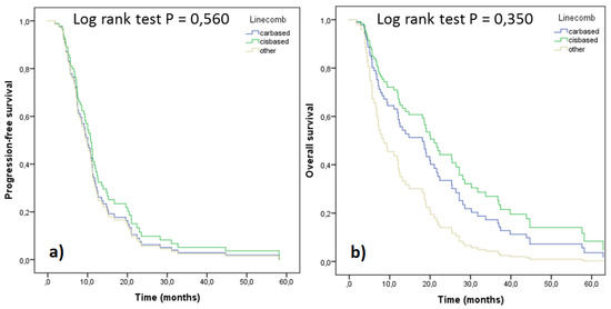 PFS (a) and OS (b) of the patients according to their 1st line treatment (n = 80).