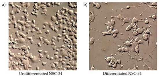 - Maier, O.; Böhm, J.; Dahm, M.; Brück, S.; Beyer, C.; Johann, S. Differentiated NSC-34 motoneuron-like cells as experimental model for cholinergic neurodegeneration. Neurochem. Int. 2013, 62, 1029–1038. [Google Scholar] [CrossRef] [PubMed]