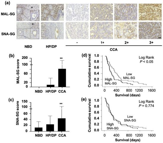3.1. MAL-SG and SNA-SG Were Elevated in CCA Compared with Normal Bile Ducts and HP/DP